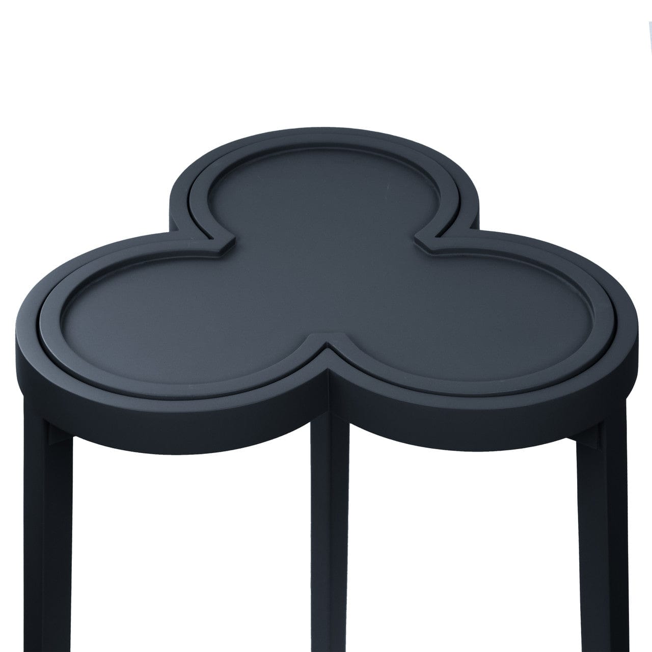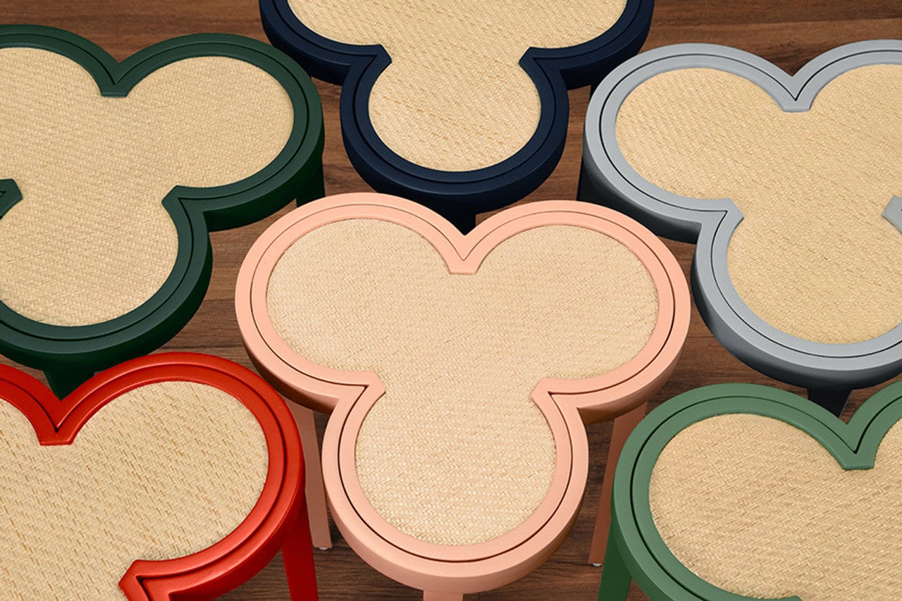 Dylan the perfect clover shaped sidekick to your game table. Let the cigar table hug the corners for a convenient spot to place drinks and shared snacks. Flip the top to switch from charming inset grasscloth to smooth, easy to wipe matching matte lacquer – two looks in one!