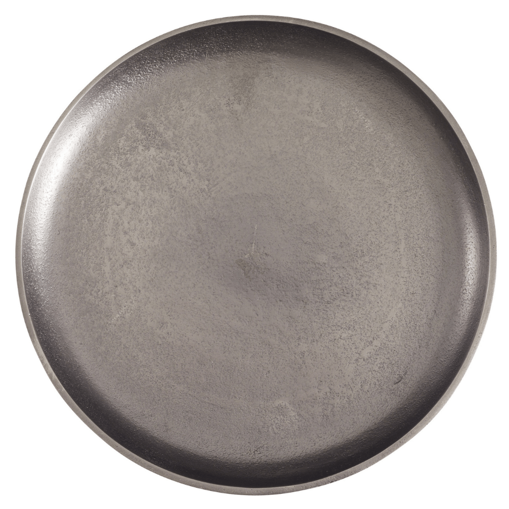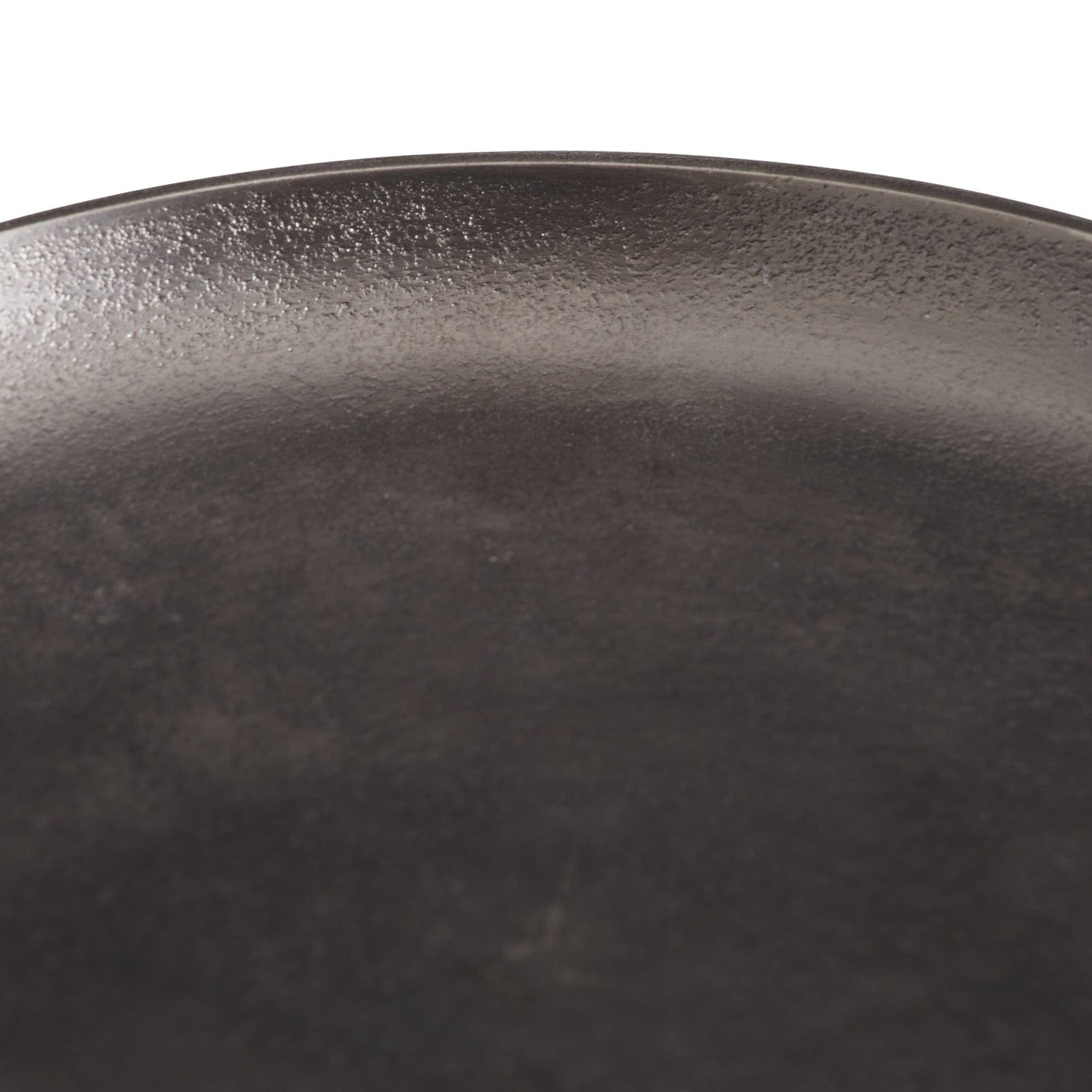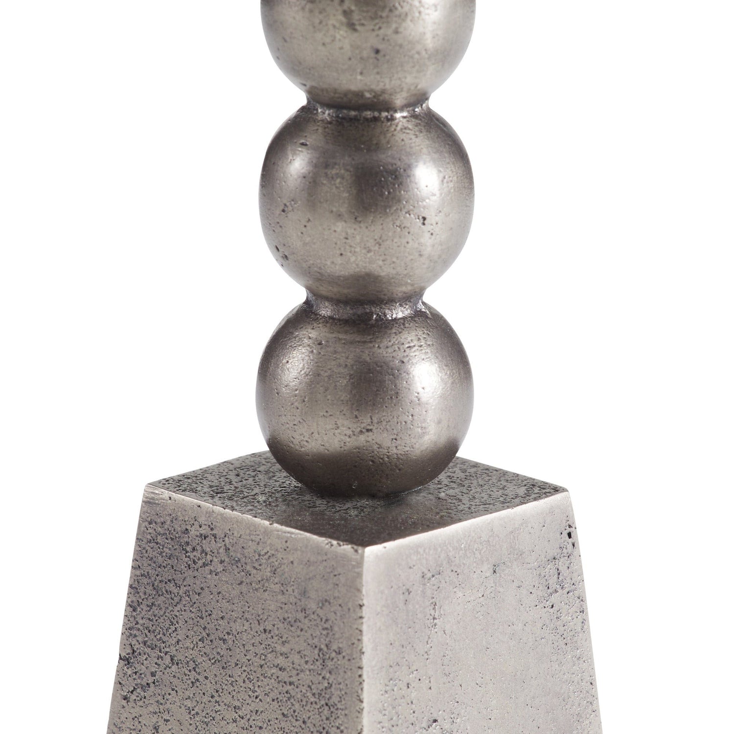 The playful form and totemic base of the Grady are influenced by the postmodern Italian design movement known as Memphis. Cast in the unexpected material of vintage nickel aluminum, the style's small scale and curved lip make it ideally suited for a drinks table. Finish will vary
