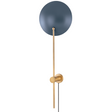 Influenced by Bauhaus and later mid-century aesthetics, Leif captures both form and function. The circular shade projects ample light on the wall behind it and gives this plug-in wall sconce a graphic element that makes it feel like artwork. The muted tones of the patina brass and soft blue or soft sand give the piece an earthy vibe. The bottom arm of the two-light sconce rotates for added versatility.