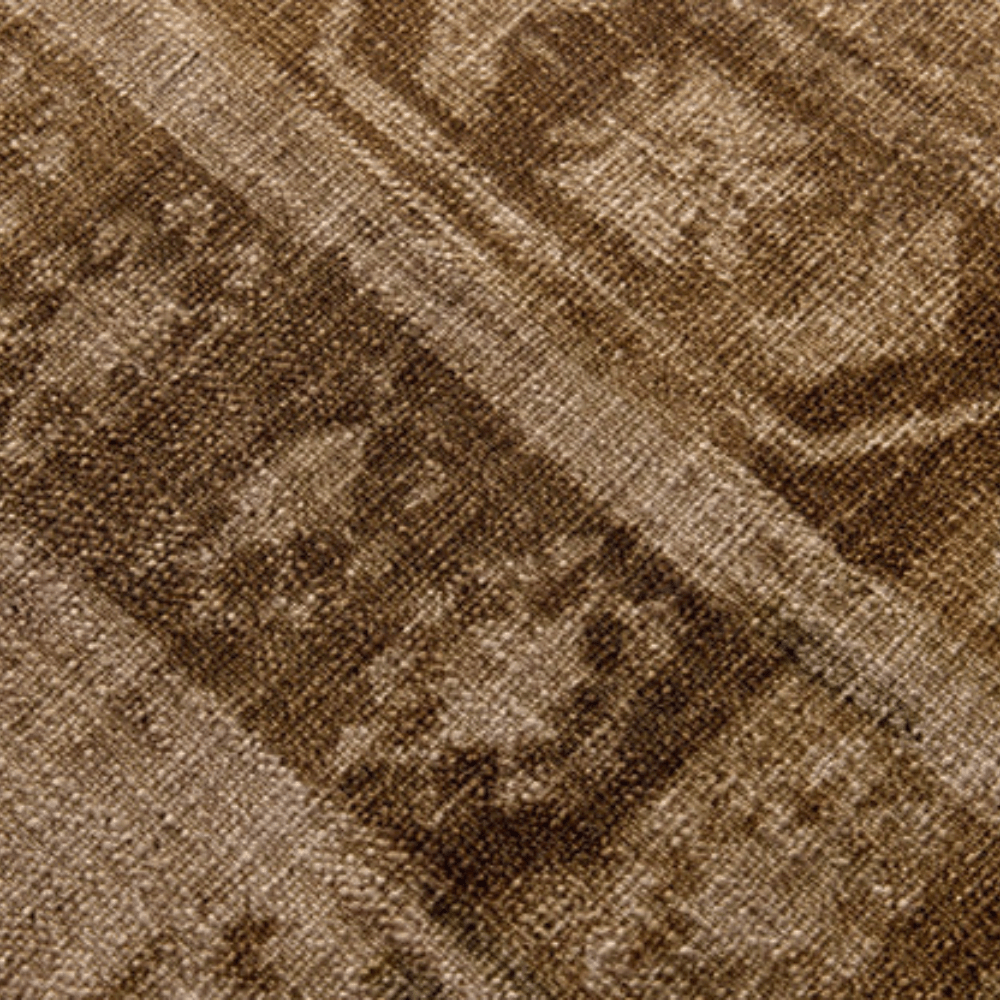 Carmella wall art from Amber Lewis x Loloi features a vintage-inspired printed textile with an earthy color palette, measuring 28” x 56”. The artwork is made in India and custom-framed in Dallas, Texas.