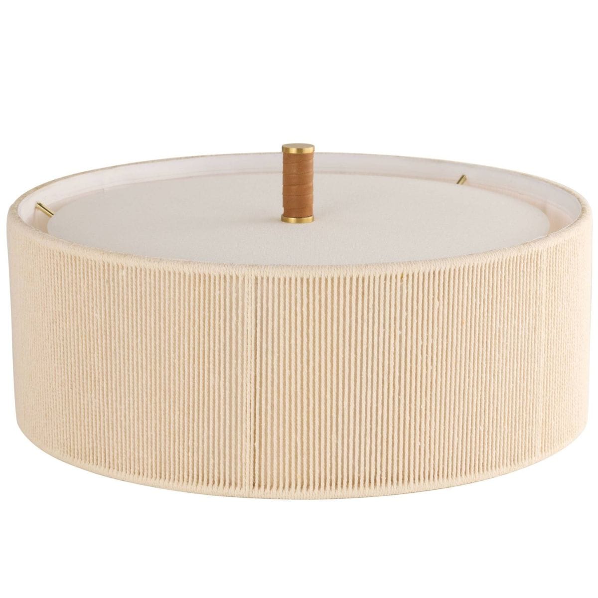 A mid-century form is reimagined in this sleek desk lamp. Presenting an organic mix of materials, The drum shade is crafted from natural cotton string with a white linen lining and matching diffuser topping a steel stem finished in antique brass with hand wrapped brown leather detailing. Finish will vary.
