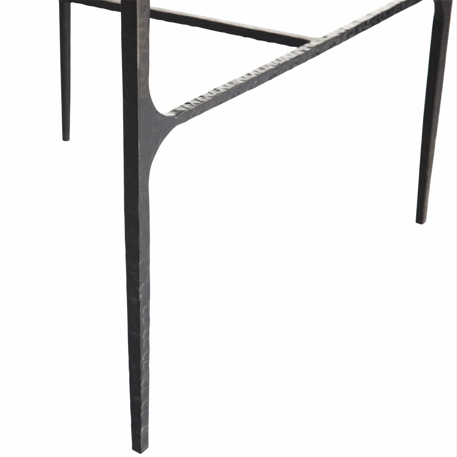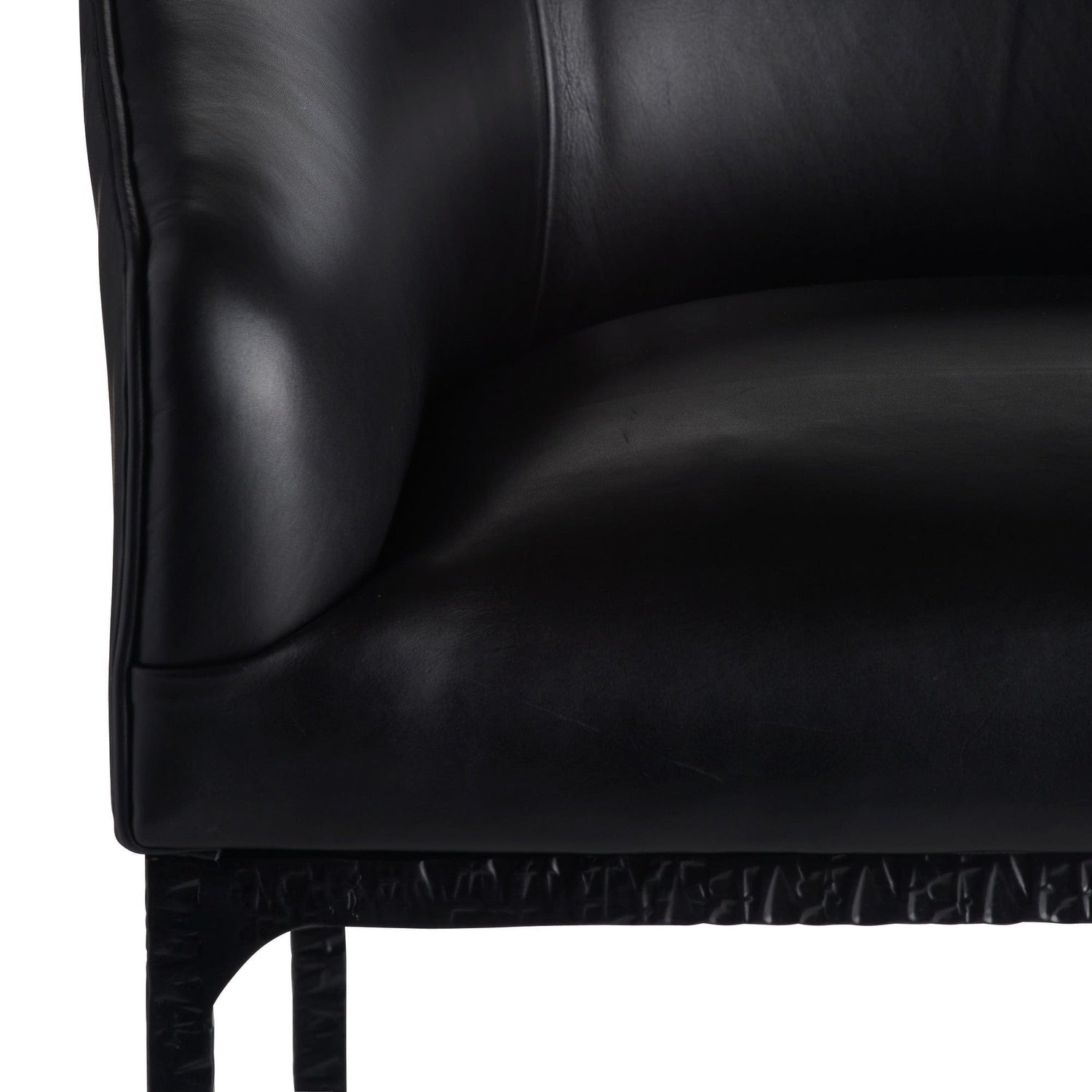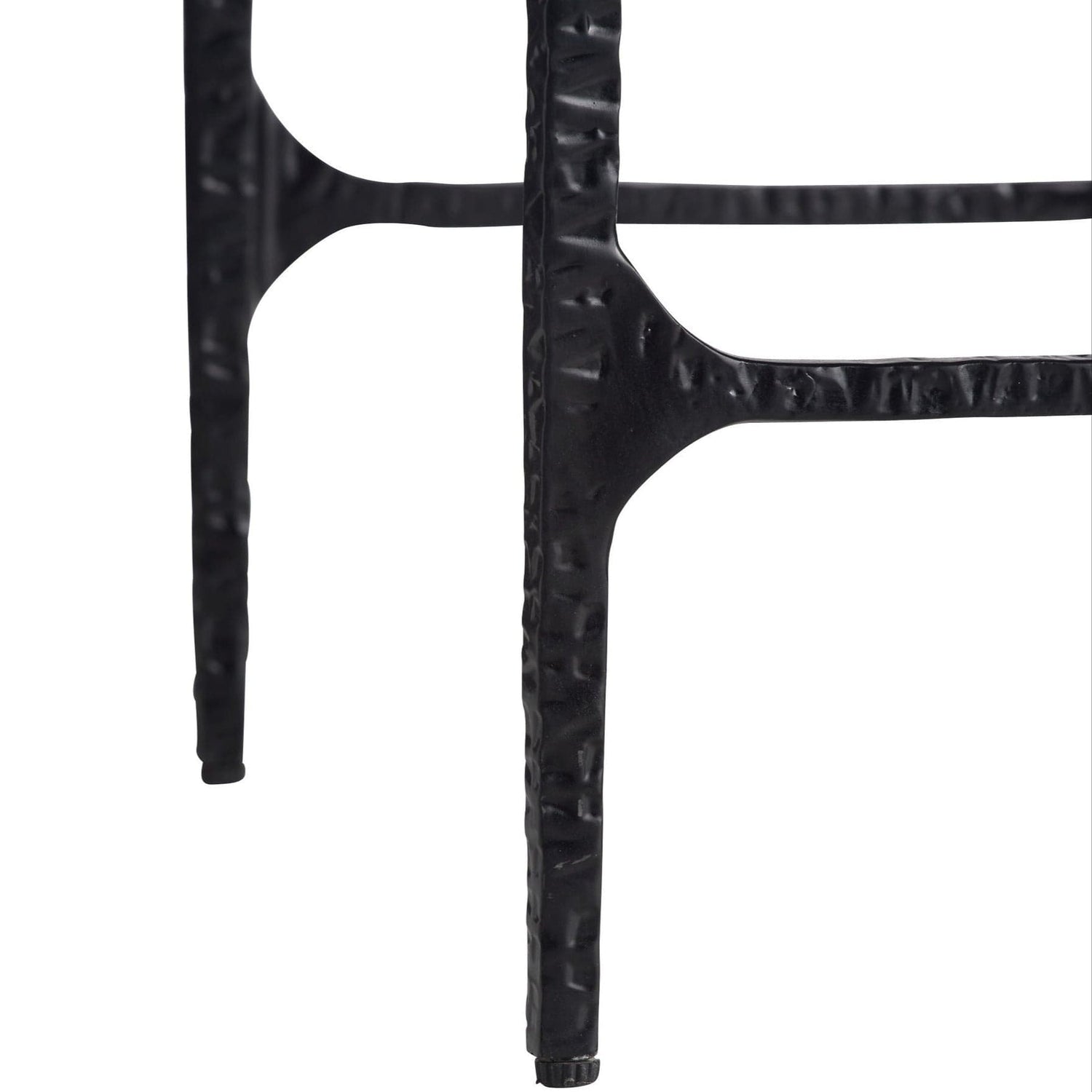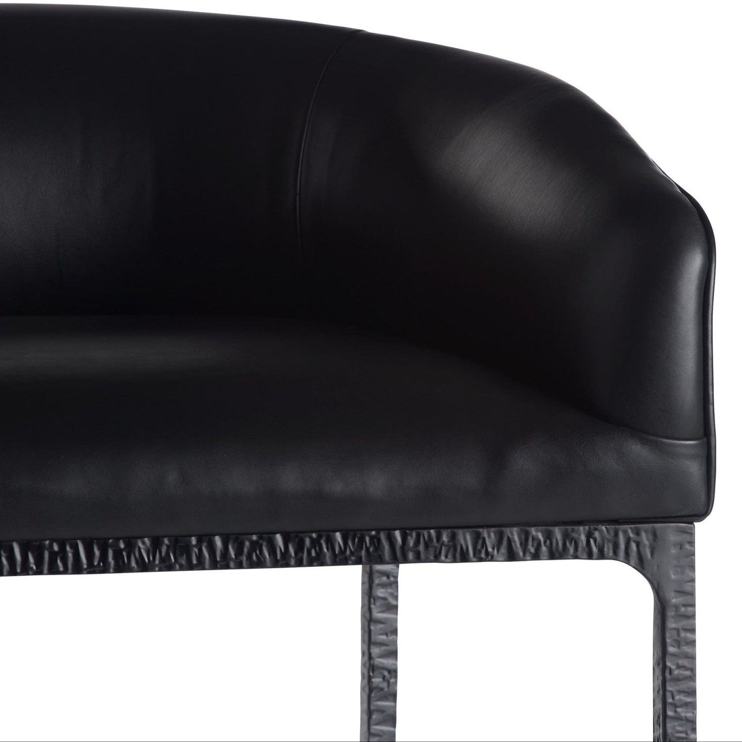 A hammered iron frame and handsome leather make this bar & counter stool ultra-chic. The low, barrel-style shape gives lumbar comfort and support while allowing the stool to tuck neatly under a bar or countertop. Its modern style brings sophistication and polish to a space. Leather and finish will vary.