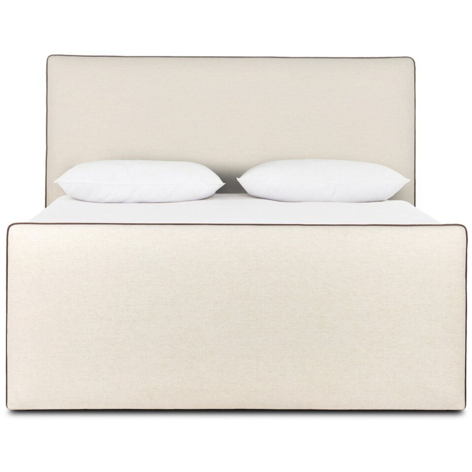 Streamlined with contrast piping, an upholstered bed offers relaxed comfort with an edge of modern detail. Upholstered in Crypton® performance fabric for a perfectly tailored look, the performance fabric is specially engineered for protection against stains, moisture and odor.