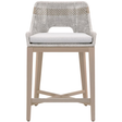 Create a coastal backyard oasis with the Tapestry Outdoor Counter + Bar Stool by Essentials For Living. Constructed with a steel frame and solid teak legs, this stool is not only sturdy, but durable for outdoor use. A taupe and white rope is tightly woven with an eye-catching solid taupe stripe interwoven at the center of the seat back. The gray teak legs feature crossed leg stretchers and a beautiful wood grain finish. It is paired with a removable all-weather seat cushion made with performance pumice olefin fabric. The stool and cushion should be stored away in extreme conditions. The stool provides comfort with style and will be the perfect addition to any outdoor dining or bar space.