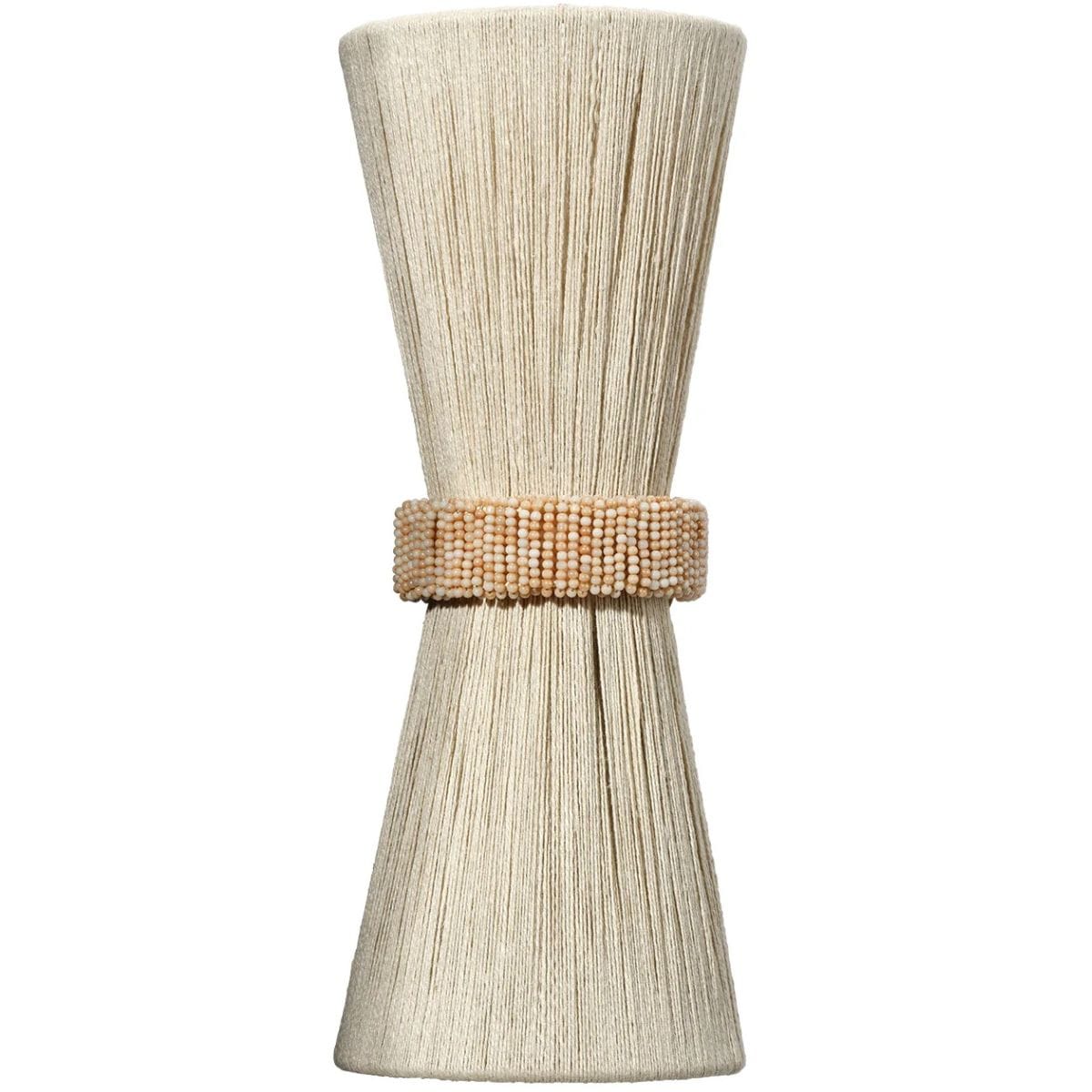 A brilliant example of the high-low aesthetic, this wall sconce pairs traditionally formal elements with relaxed materials, creating a look perfectly suited to today’s elegant yet easygoing homes. The strong interior frame is crafted from iron, while the exterior is wrapped in natural bleached jute and cinched at the center with a band of small pearlescent glass beads. The sconce can be mounted horizontally or vertically to brighten a hallway, add a touch of sparkle to a living area, or enliven an entryway.