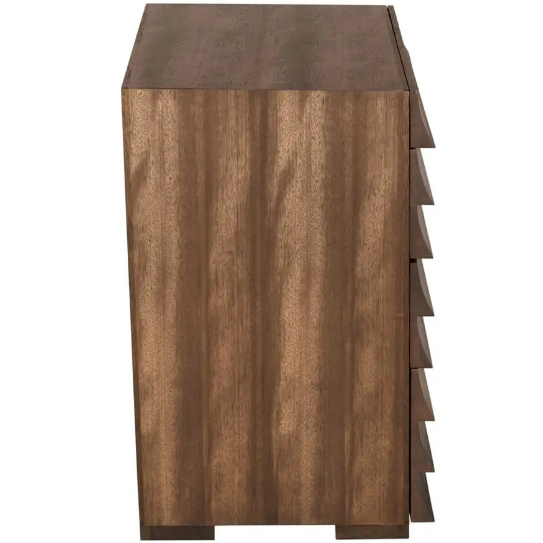A four-drawer modern cabinet featuring a ridged, wave-like front that doubles as drawer pulls. The sculptural detailing enhances light and shadow, merging brutalist form with artisanal craftsmanship for a striking statement piece.