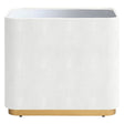 Defined by its faux shagreen finish, round corners, and antiqued mirror top, this sophisticated statement ushers in a new era of elevated living.