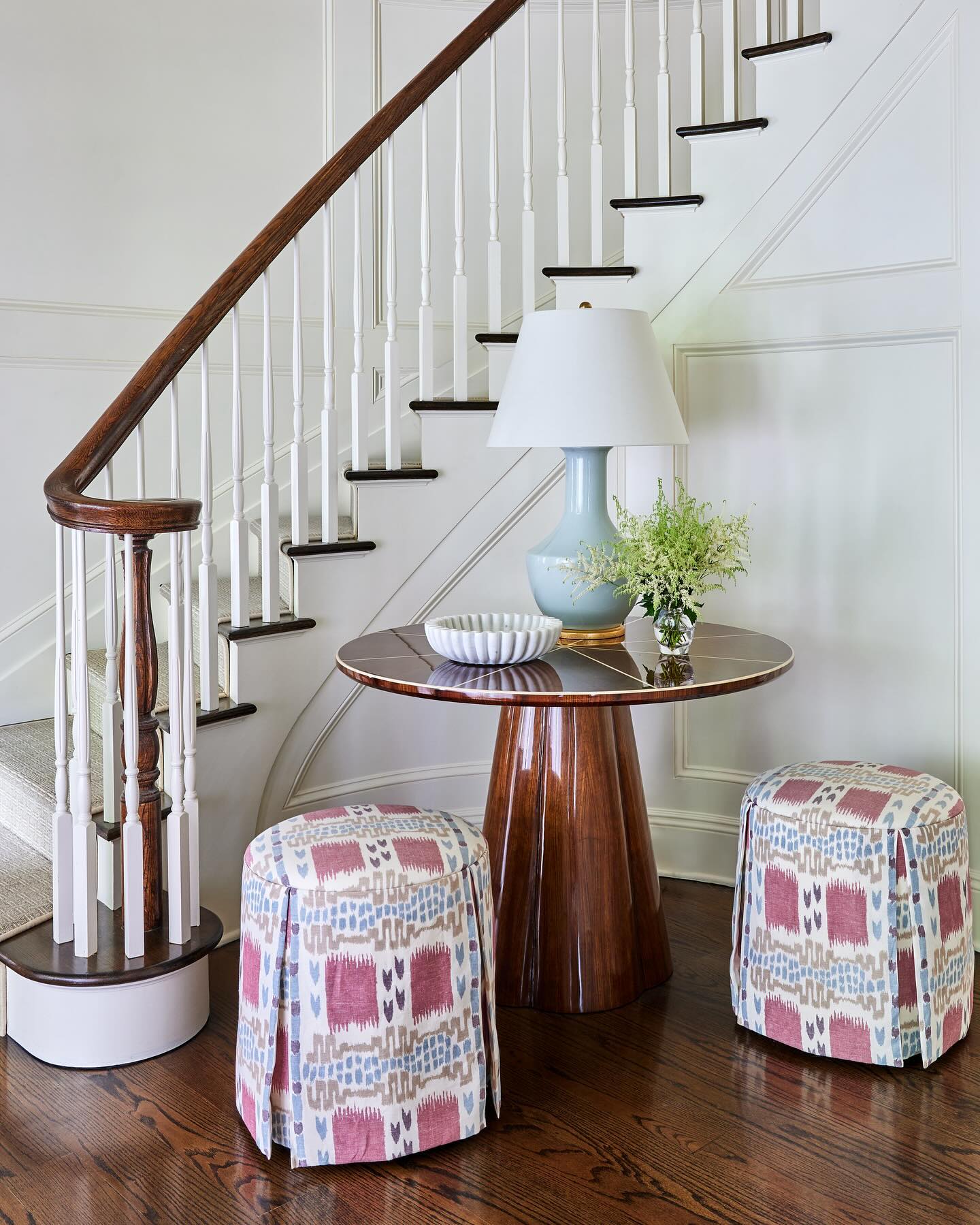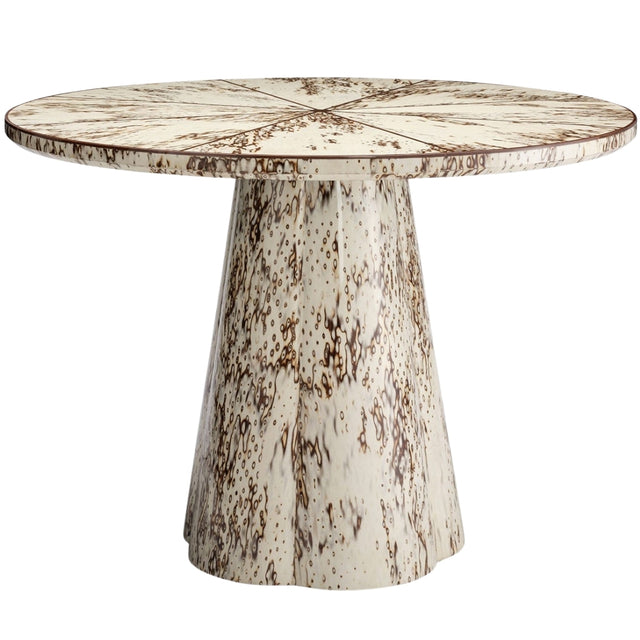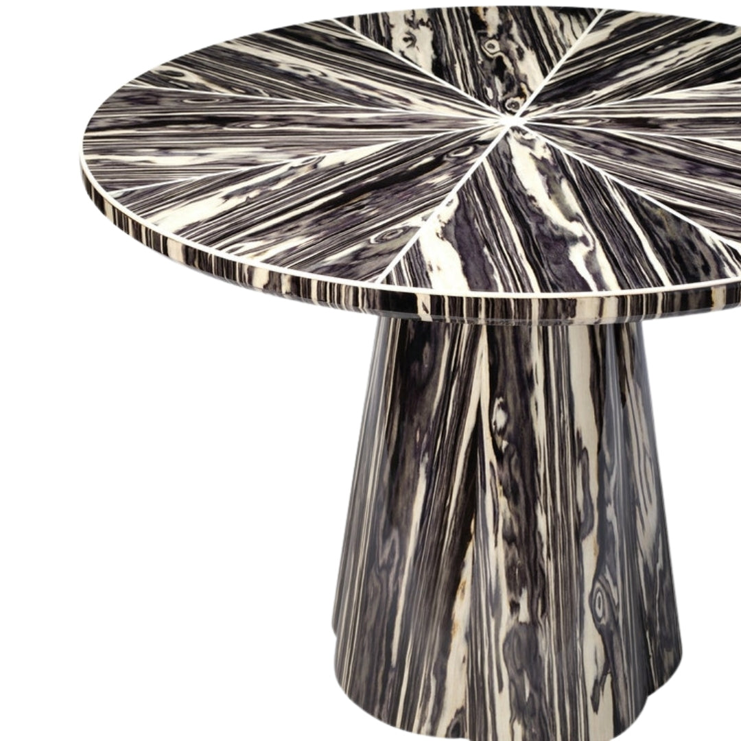 The Novak entry table leaves an exquisite impression with its birdseye burl veneer design. The pedestal-style base lightly widens near the bottom, creating a charming, yet organic, effect.