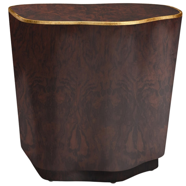 There's nothing subtle about the Page. The side table's abstract shape is highlighted by the bold patterning of its olive ash burl wood veneer. Faux-raffia textured gold trim along the table's edge blends in with the design but brings a bit of muted glam to its otherwise organic look. Each table will be entirely unique—a natural work of art.
