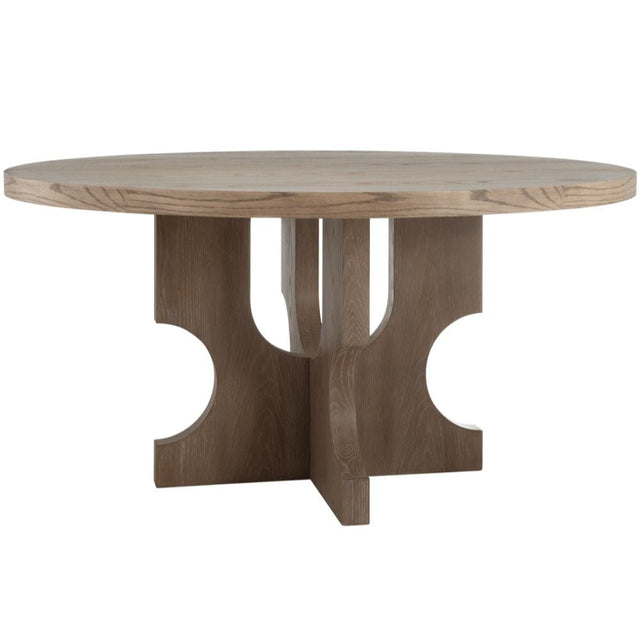 The Sylvie Dining Table is a beautifully crafted piece that marries timeless elegance with modern design. This table comfortably accommodates up to six people, making it ideal for family gatherings and dinner parties. Made from oak veneer and finished in a cerused natural hue, the Sylvie Dining Table showcases the natural beauty of the wood grain while adding a touch of sophistication to any dining area. The table's sturdy base features a unique geometric design, providing both visual interest and stability. Its versatile style effortlessly complements both contemporary and traditional interiors, making it a standout addition to any home.