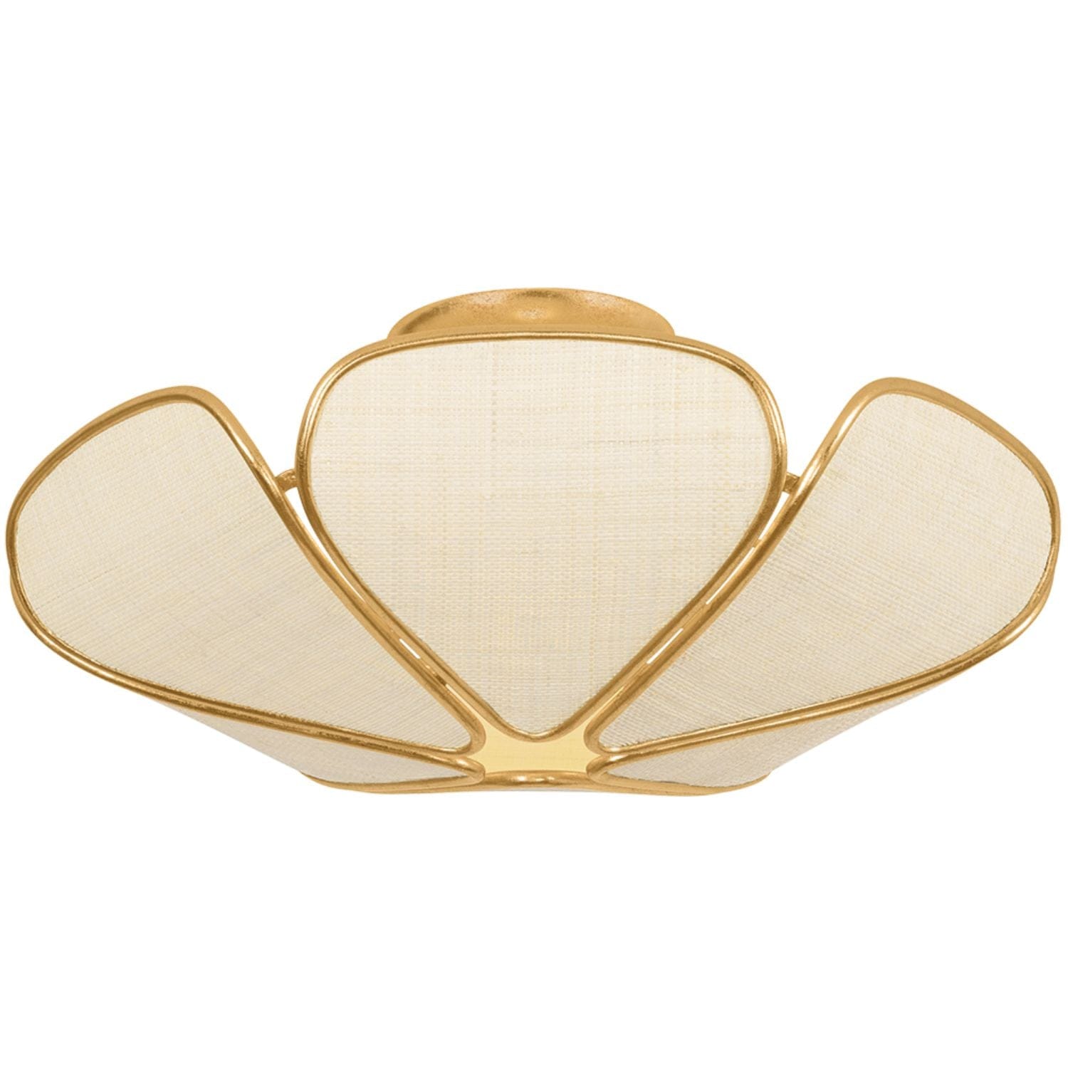 Inspired by Art Nouveau designs, the Bayville family uses natural materials to create flowing botanical silhouettes. The breezy Saguran fabric shade is constructed of petal-like panels edged in Vintage Gold Leaf and lined with abaca. Available as a semi-flush and a pendant in two sizes, Bayville will breathe new life into any space.