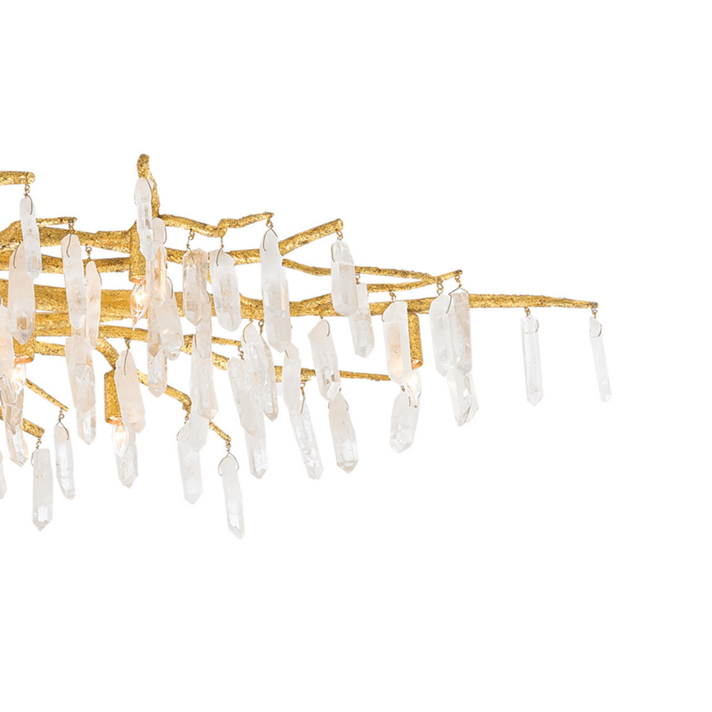 The Forest Light Semi-Flush is an exceptional work of art dripping with crystals. The washed Lucerne gold finish is a perfect complement to the quartz on this sculptural gold semi-flush that echoes nature with its tree-like branches.