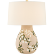 The Maeve table lamp elevates an understated silhouette with an artistic floral design. Reminiscent of hand-painted vases, the soft pastel Maybell Motif glaze traces the base with floral forms. Topped with a wide white linen shade, Maeve diffuses light in a calm, even glow.