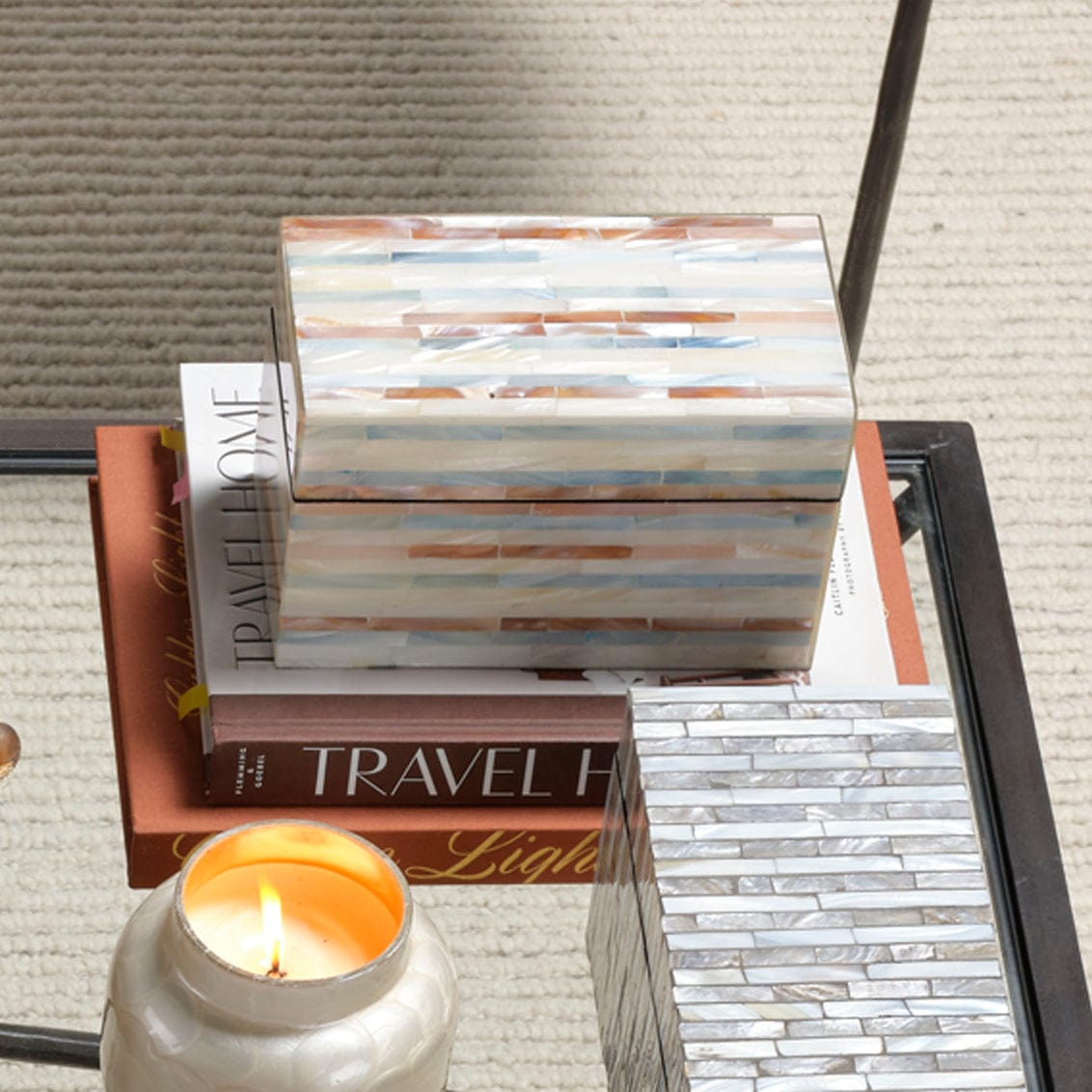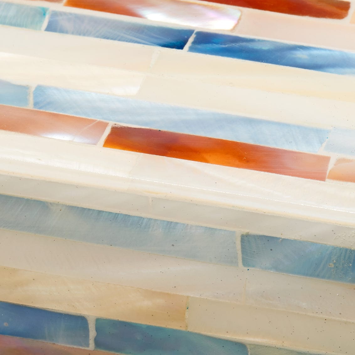 Mother of Pearl is a naturally iridescent jewel of the sea. The substance has a rich luminescence, and each piece of it is unique. These magnificent boxes are adorned with mosaics created from small multi-tonal strips of this material. Our expert artisans place each piece by hand resulting in true works of art. Opulent and yet still somehow simple, they can be used to stylishly stash anything from desk necessities to cosmetics or jewelry.