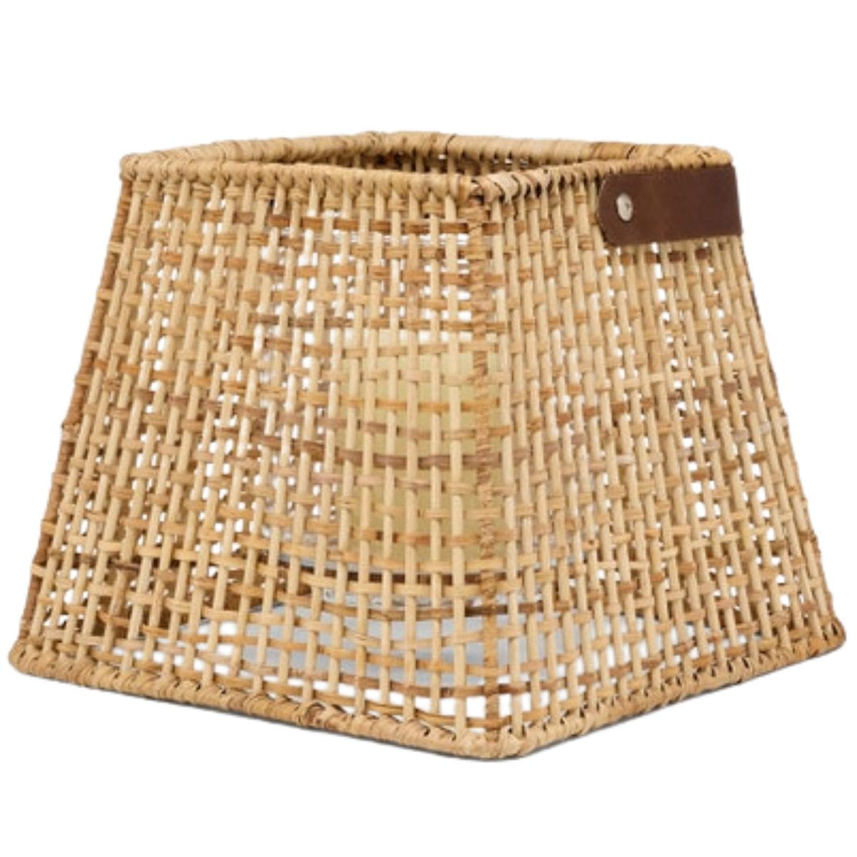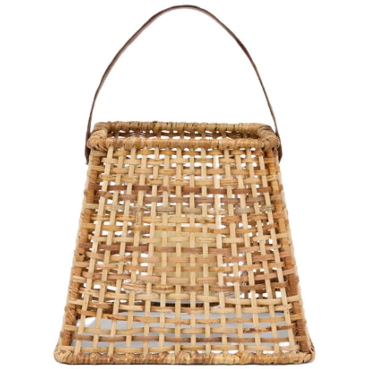 Our Trent lantern hurricanes add texture to a space with its delicately handtied pattern and contrasting leather handle.