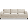 A classic silhouette with Art Deco influences, this versatile sofa introduces a crisply tailored yet beautifully worn aesthetic in a distressed chenille fabric. Accentuating subtly angles and a sophisticated profile, a micro suede border lends tonal contrast and texture, warmly complemented by tapered feet in a Brushed Deep Bronze metal.