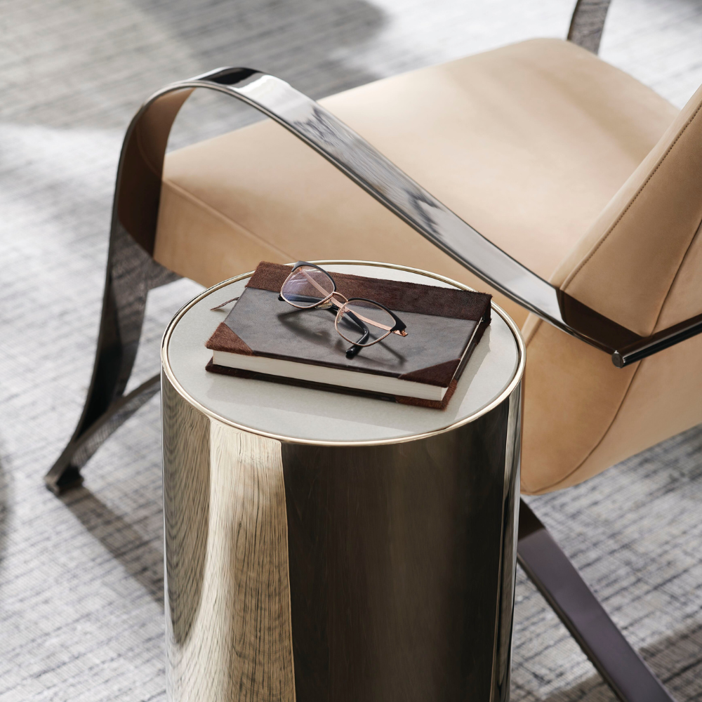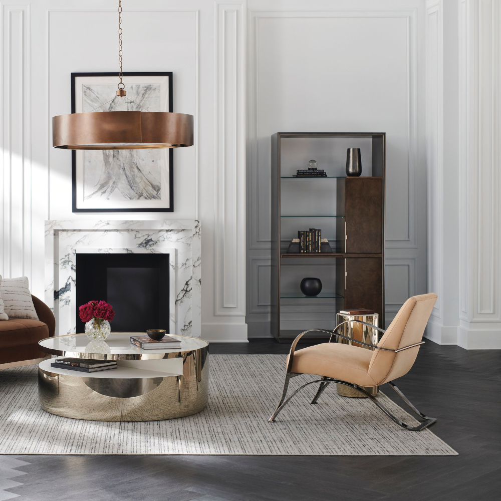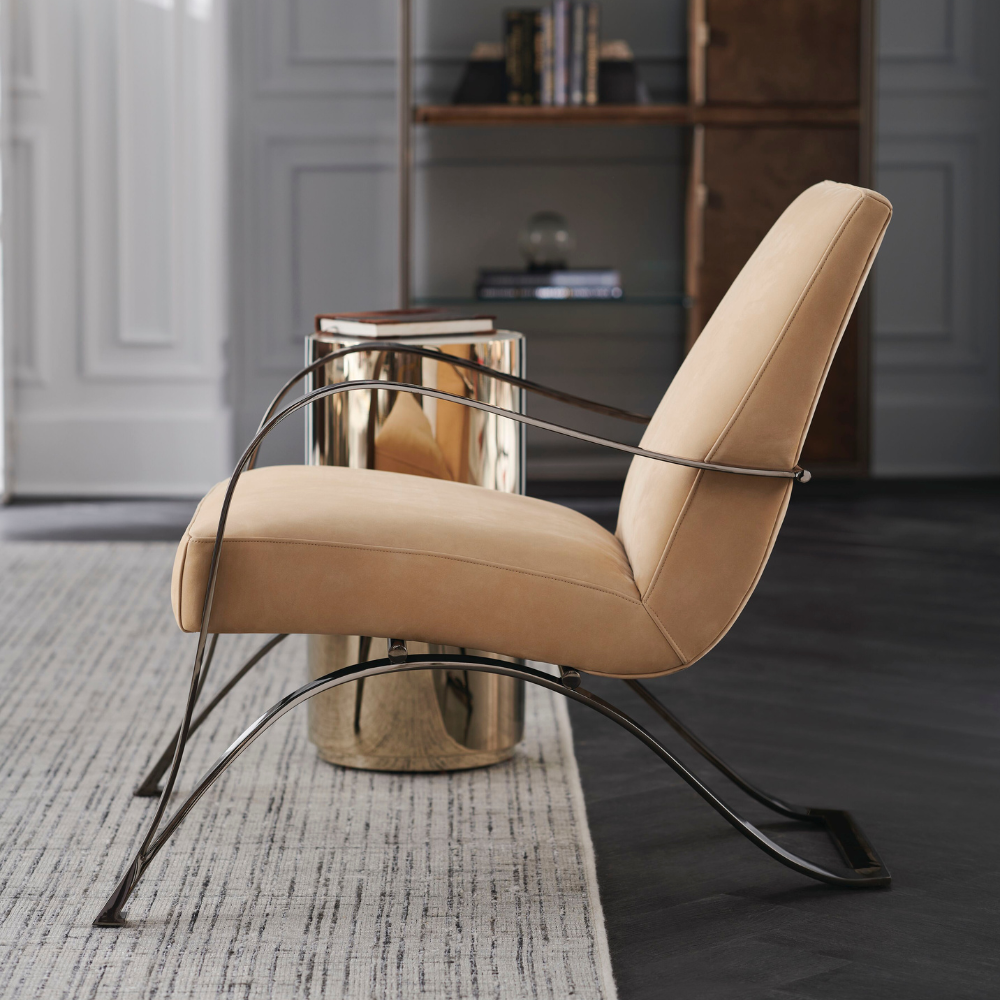A sleek introduction to modern living interiors, this chair merges form with function for a style that’s as comfortable as it is fashionable. Curved lines create tension and an elegant metal frame for a perfectly pitched back and seat, covered in a buttery soft, nubuck leather. Pairs well with our Main Event sofa and other shapely silhouettes in our collection.