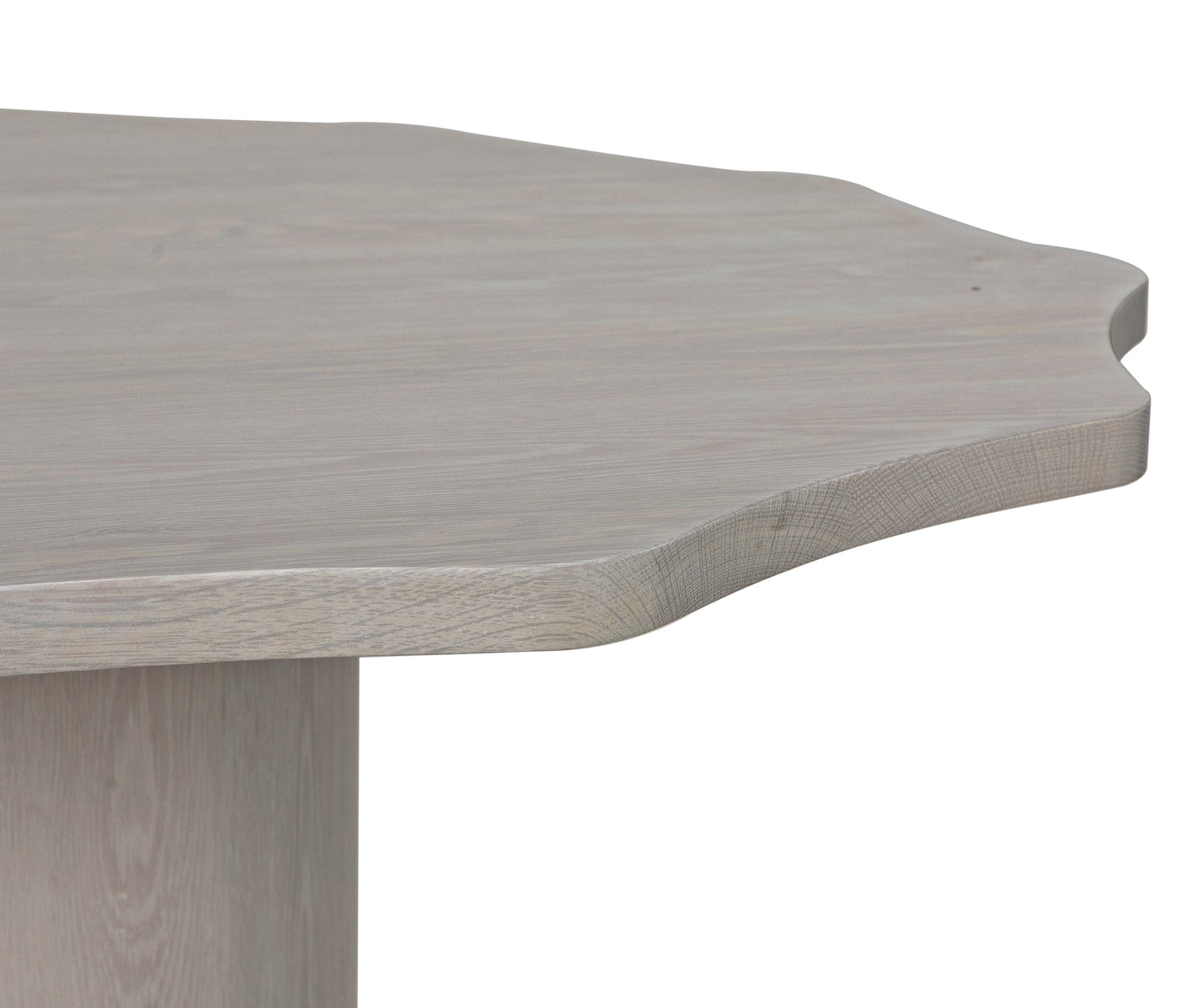 The Dahlia Dining Table is a striking piece crafted from oak, showcasing a unique blend of natural beauty and bold design. Its distinctively shaped top features softly contoured edges, giving it a sculptural quality that draws the eye. The warm wood grain highlights the craftsmanship, while the sturdy cylindrical base provides both stability and modern appeal. Perfect for gathering spaces, this table adds a refined yet contemporary touch to any dining room.