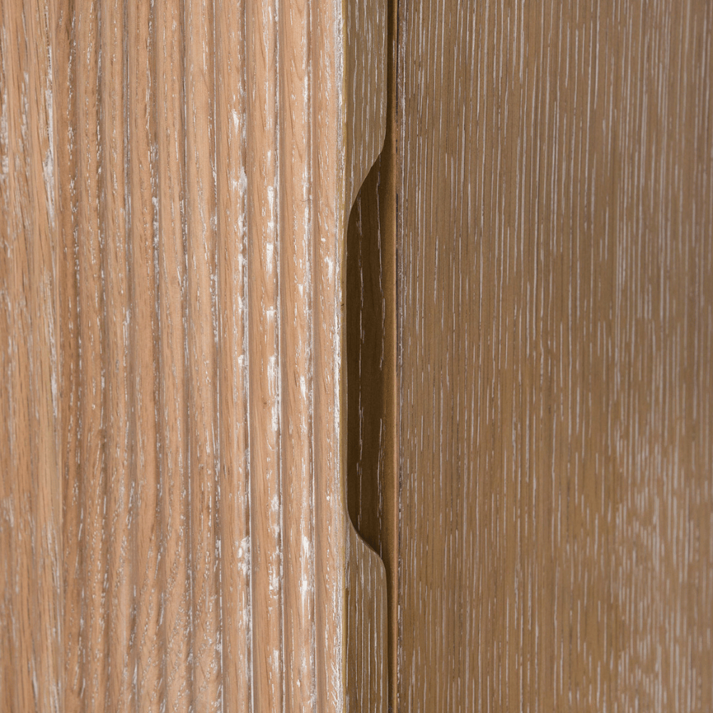 The Atlas Console is a beautifully crafted oak piece that pairs architectural structure with thoughtful design details. Its three-tiered silhouette offers generous surface area for styling and storage, while its ends are elegantly rounded and finished with fluted panels that create a striking visual rhythm. Hidden cabinets on either side are seamlessly integrated, providing concealed storage without disrupting the console’s clean lines. With its graceful curves, layered shelving, and tactile finishes, the Atlas brings depth, utility, and sophistication to any space.