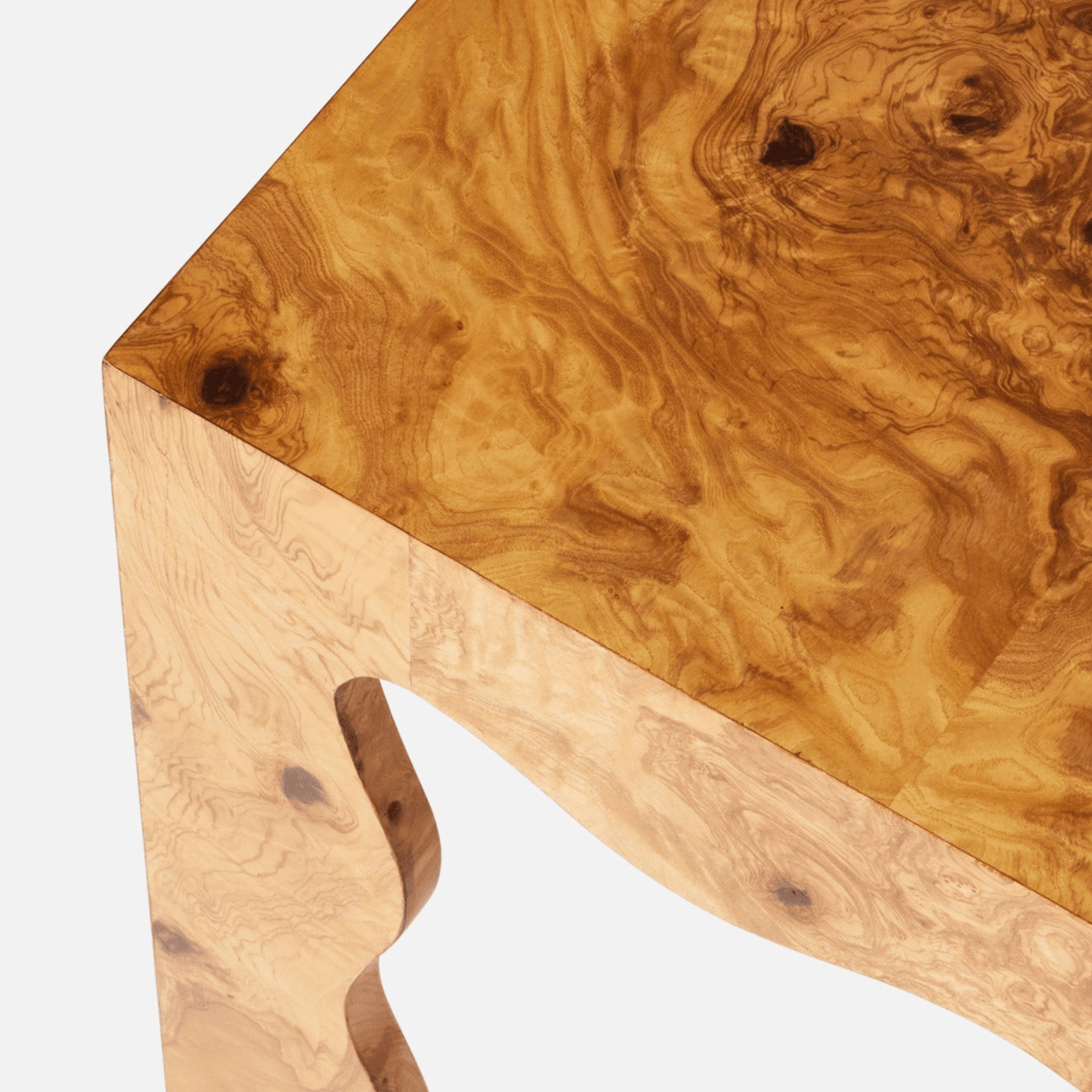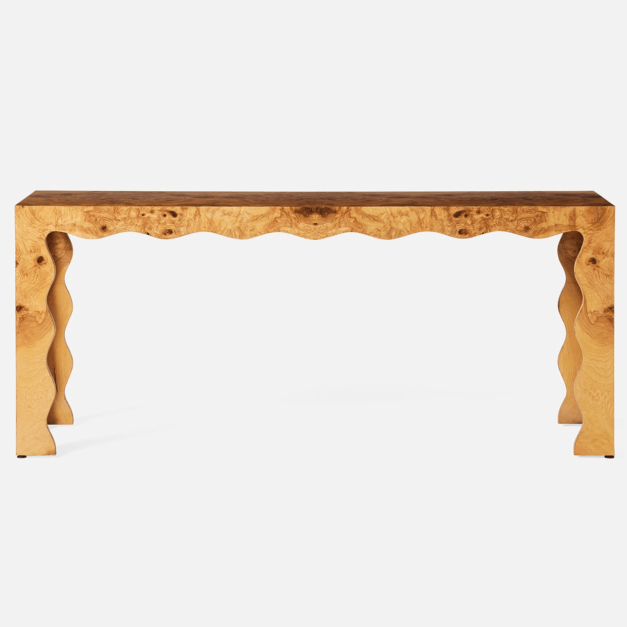 Making waves. Our carefree and curvaceous Maurice console combines a contemporary wavy silhouette with striking two-toned olive ash veneer.