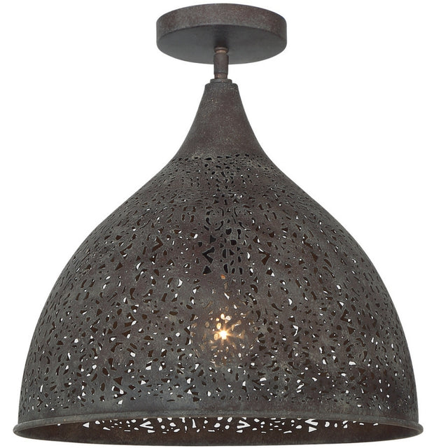 The classic silhouette of the Jasmine semi-flush is defined by the intricate filigree detail. Light illuminates through the metal pattern creating beautiful distribution of light to its surroundings.