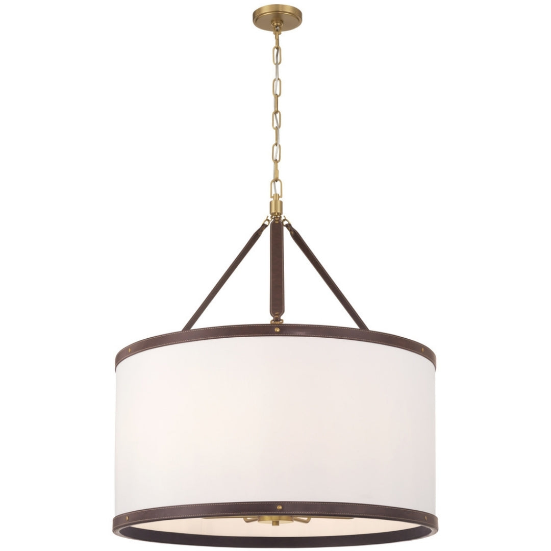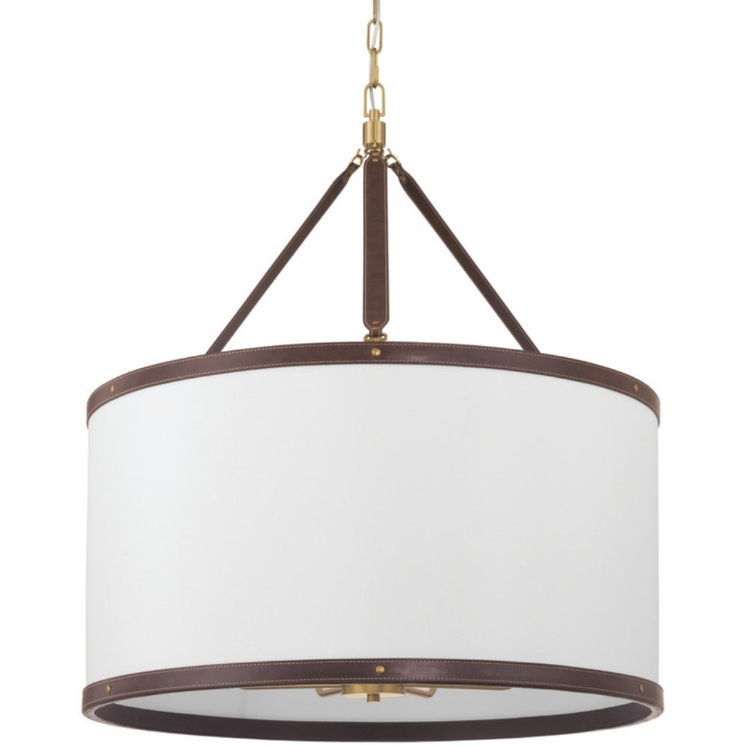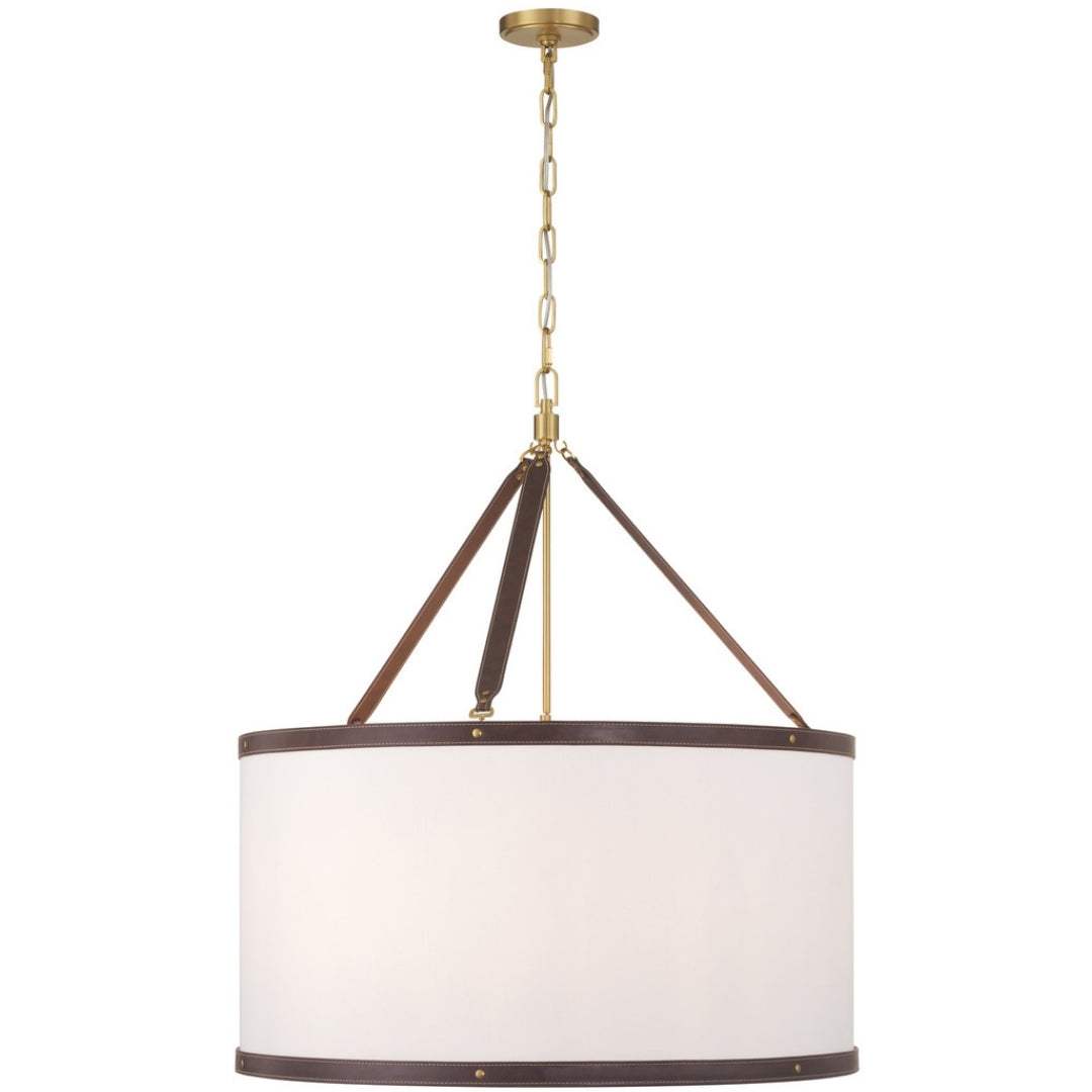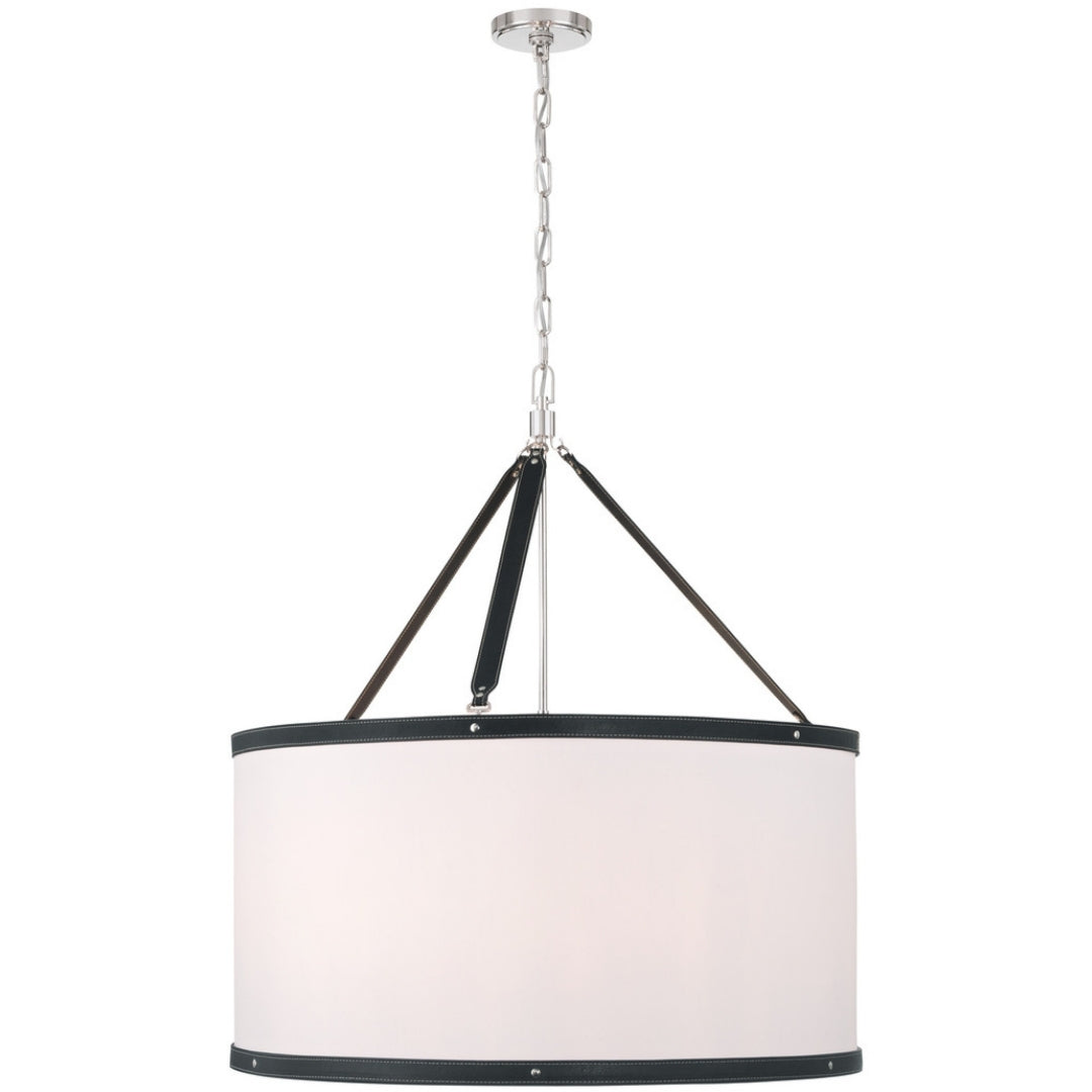 The Callahan collection designed by Libby Langdon, features a textural linen shade accented with a refined vegan leather trim that connects like a belt buckle. Its sleek, transitional design offers elegant lines and timeless details, making it a versatile and stylish choice for any space.