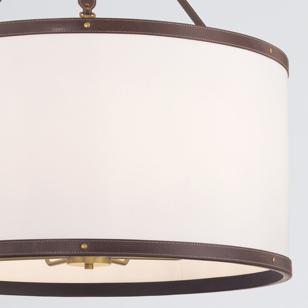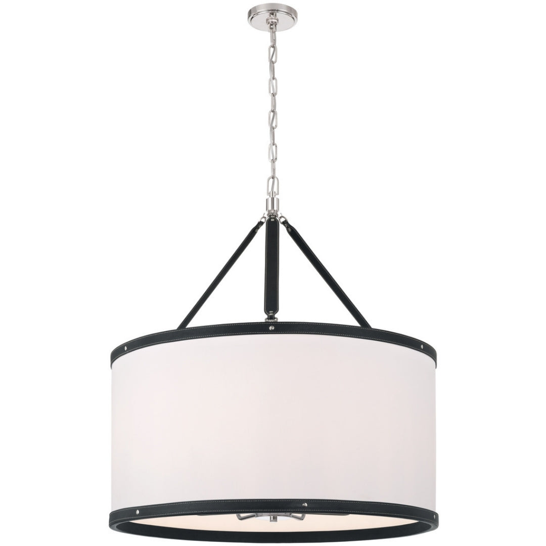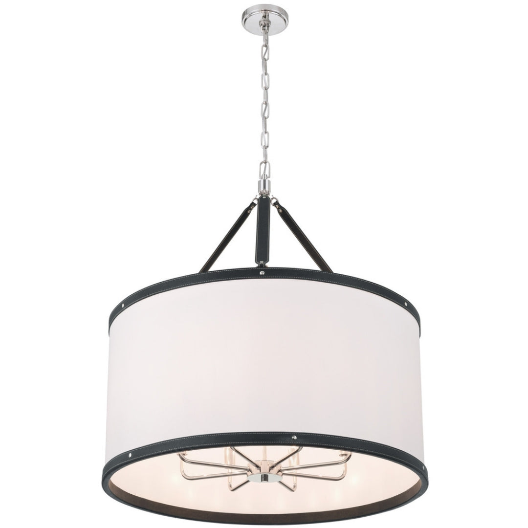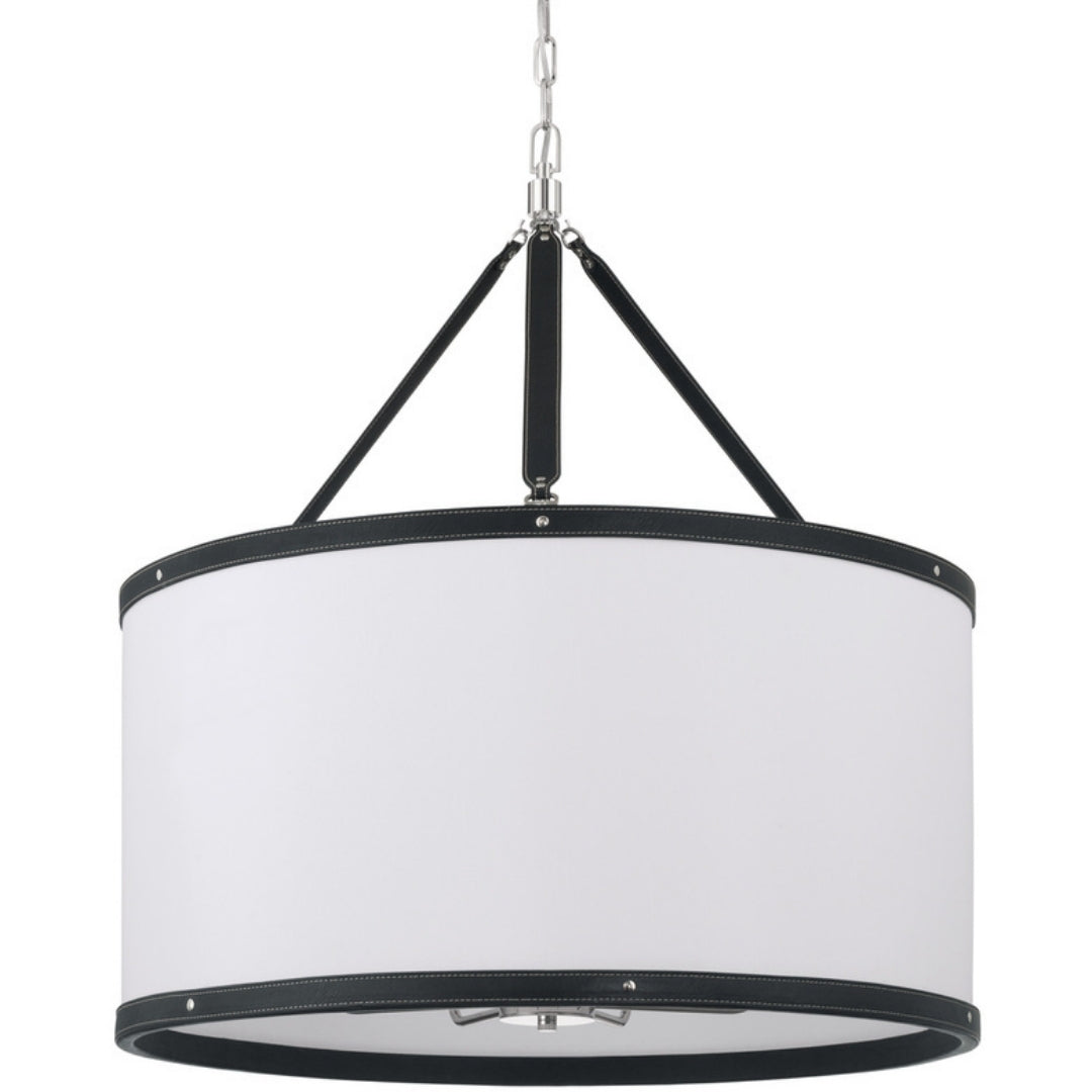 The Callahan collection designed by Libby Langdon, features a textural linen shade accented with a refined vegan leather trim that connects like a belt buckle. Its sleek, transitional design offers elegant lines and timeless details, making it a versatile and stylish choice for any space.