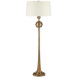 The Boullee Floor Lamp is crafted from cast aluminum in an antique brass finish. Its round stepped base rises into a trumpet-shaped lower body that narrows as it extends upward. Near the top, a series of globe accents add ornamentation just below the drum shade, giving the lamp a classic yet distinctive profile. Because it is made of an artisanal material, its surface may vary slightly from lamp to lamp.
