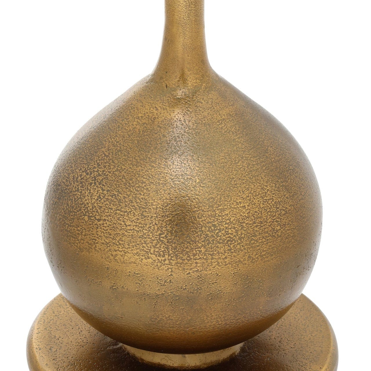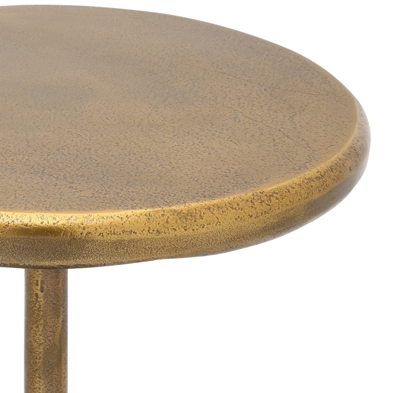 The Carillon Accent Table is a nod to America’s industrial age, crafted from cast aluminum in an antique brass finish. Its classic profile is enhanced by the natural pitting of the casting process, giving the surface a rugged, tactile quality. Solid and sturdy, the table combines durability with a timeless industrial character. Because it is made of an artisanal material, its surface may vary slightly from table to table.