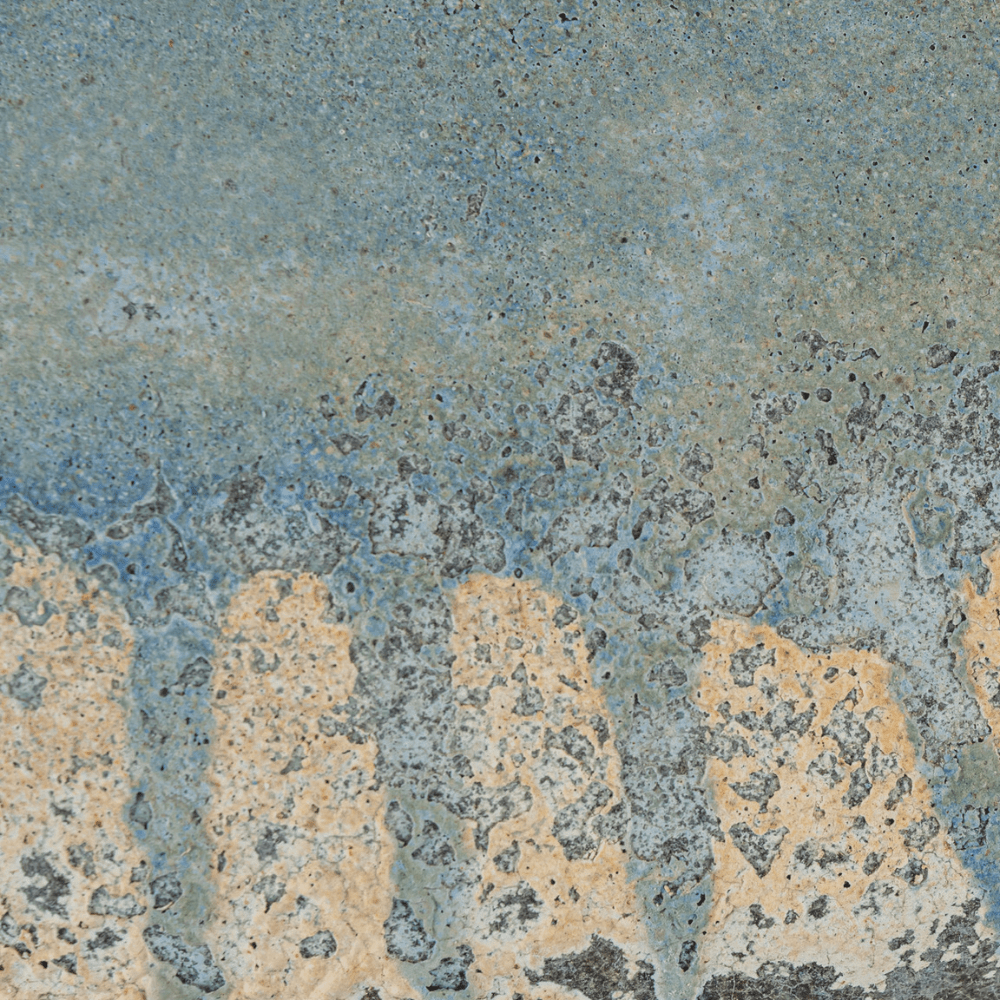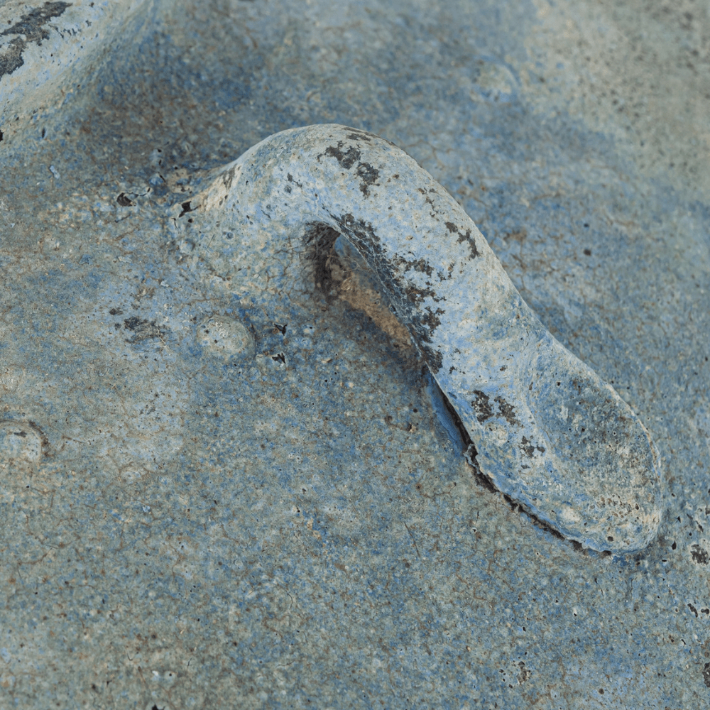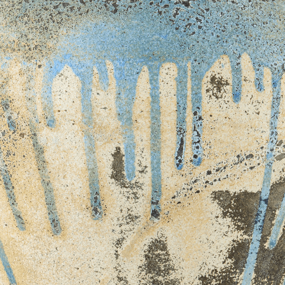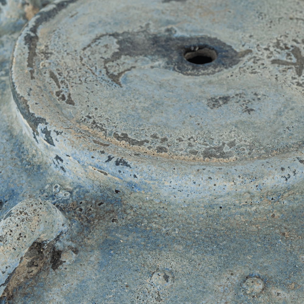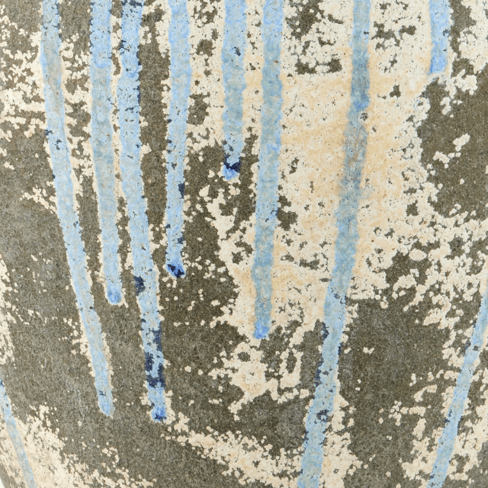 Made of hand-built terracotta, the Catania Antique Blue Drip Table Lamp has tremendous Mediterranean personality. Because the pale ivory color is slathered on by hand and the blue is dripped by an artisan, each color that contrasts the hues of the raw terracotta will bring significant variations to each lamp. With an appearance that looks centuries old, the sizeable jar-shaped body, which measures two feet in diameter, is contrasted by the flaring modern empire shade.