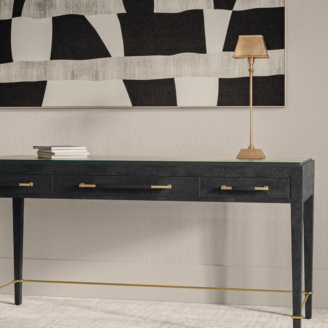 The Geddy Table Lamp has a slim, understated profile made of solid brass in an antique brass finish. A thin stem rises...