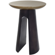 The Pince Accent Table is crafted from cast aluminum with an arched base in a black nickel finish and a subtly convex top in antique brass. Both surfaces feature a hand-hammered texture that adds depth and character to the metal. With its modern Gramercy Park aesthetic and solid construction, this table has a sleek look and a sturdy presence. Because it is made of an artisanal material, its surface may vary slightly from table to table.