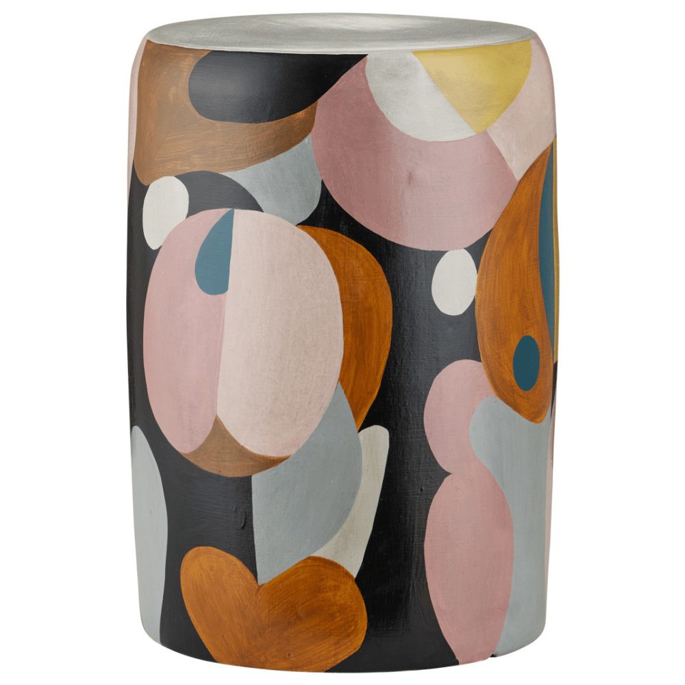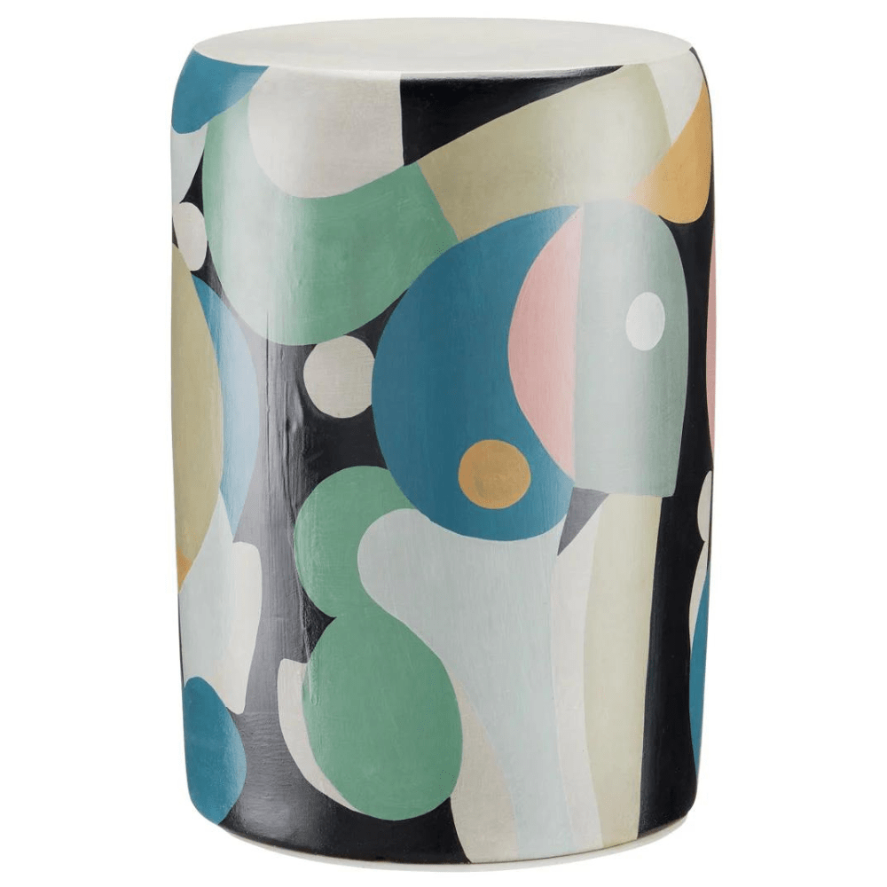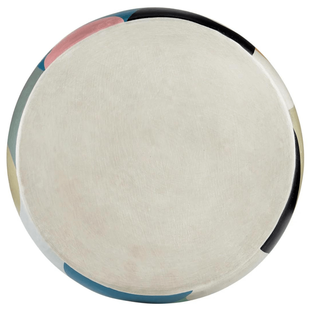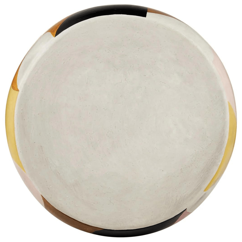 Made of terracotta in blue, pink, black, tan, and yellow pops of color, the So Nouveau Accent Table belongs in the Art Decoratifs, or Art Deco, category thanks to its strong hues and graphic qualities. The elegant multicolored accent table has a shape that will add interest to its spot in a room. Because this colorful table is hand-painted, it is truly an artisanal piece.