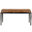 This modern desk features five drawers with a Dark Walnut top, brass hardware, and an Ebony Walnut base, complete with elegantly tapered legs. Its minimalist design provides both style and functionality, making it ideal for contemporary or transitional spaces.