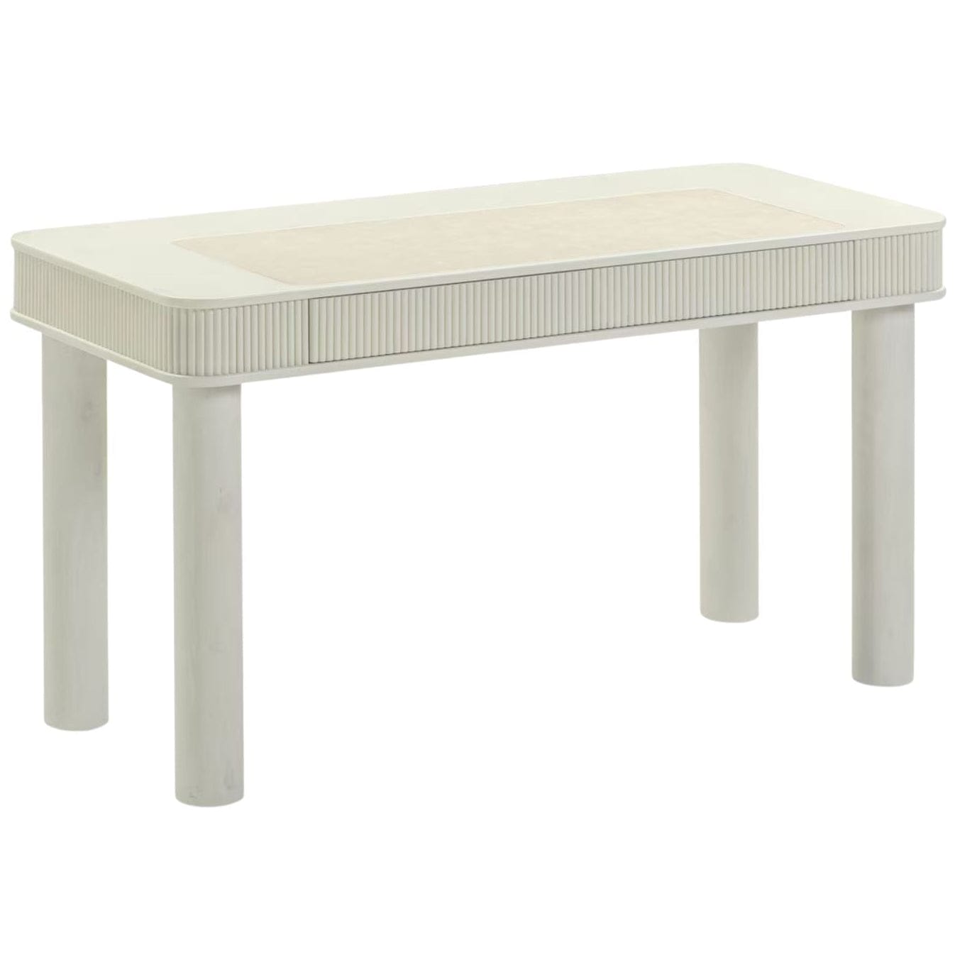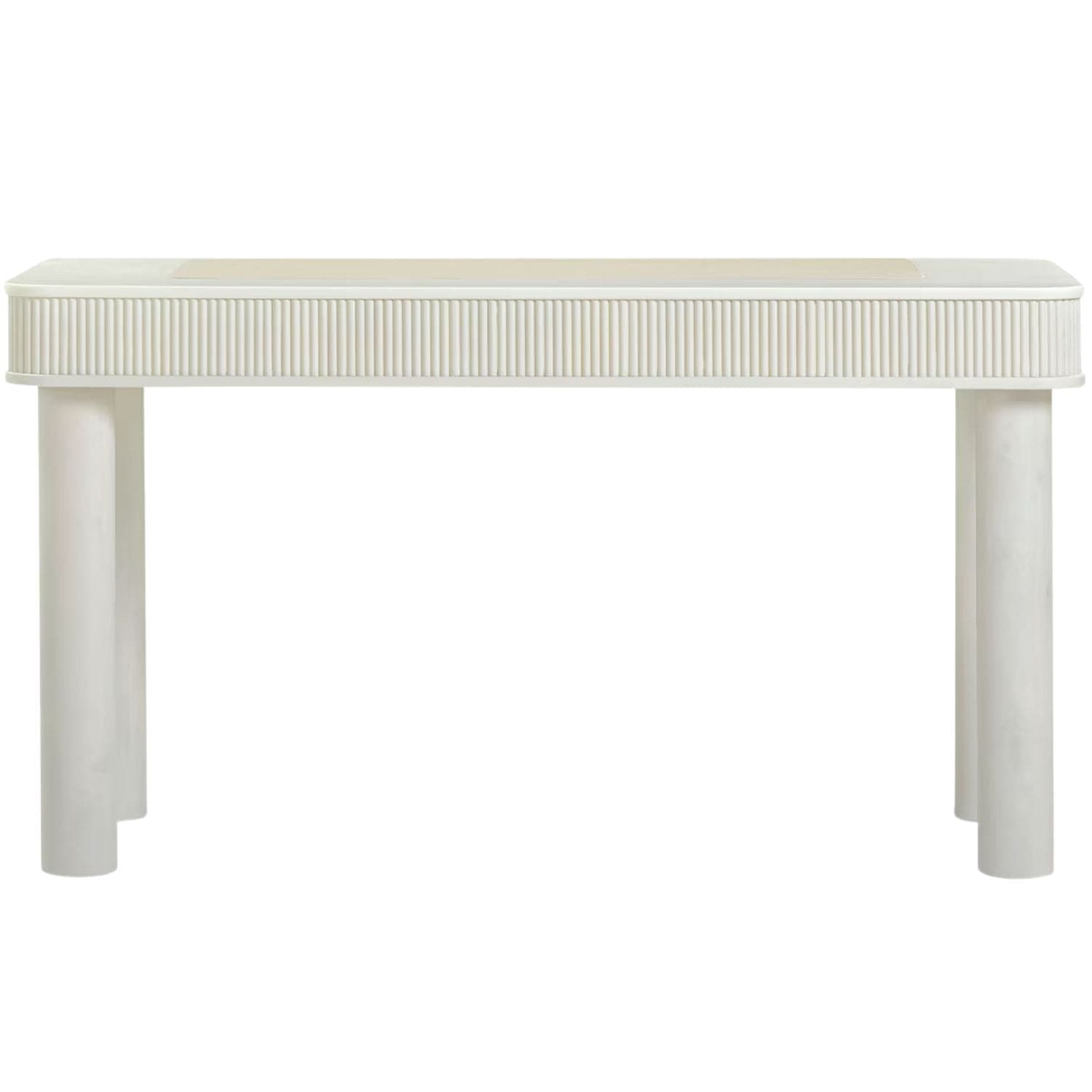 The Harrison Desk brings sculptural beauty to your workspace with fluted edging, thick pillar legs, and a fully finished back...