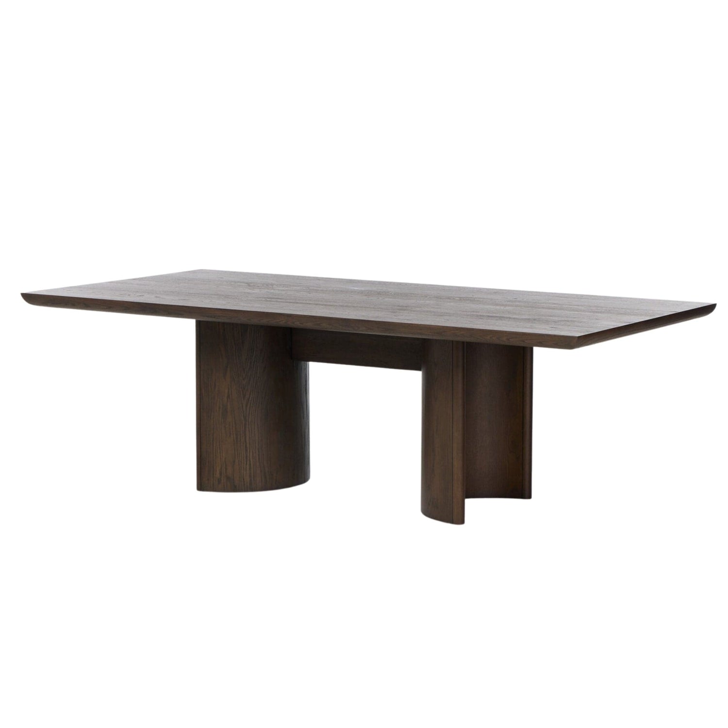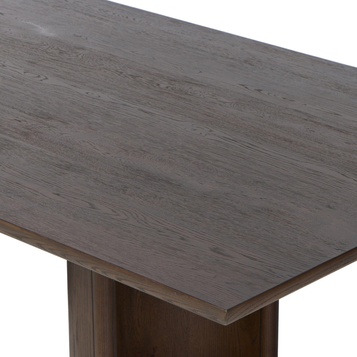 The Conley table brings rustic charm into modern living, showcasing a robust 94″ tabletop hewn from richly grained tobacco oak. Its architecture features sturdy sawhorse-style legs—a timeless design that seamlessly blends farmhouse warmth with contemporary simplicity