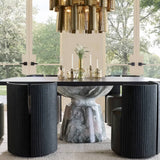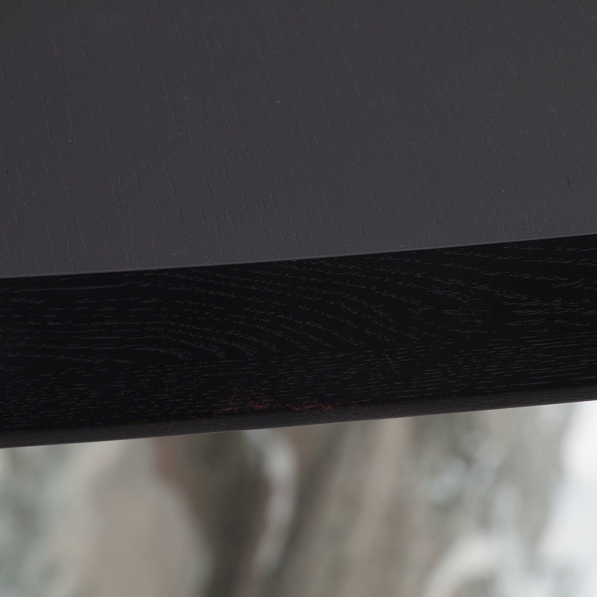 Classicism meets contemporary. The urn-shaped base of verde faux marble hydroprint concrete composite offers an elegant juxtaposition of materials to the ebony oak veneer top. Beveled on all four edges, the Forgey's polished surface features a diamond patterned top. Finish will vary.