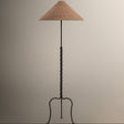 The Francisco floor lamp celebrates the creative capabilities of metalwork. The French Iron frame features a twisted stem and artful tripod base, highlighting the craftsmanship behind this charming lamp. A woven natural abaca shade tops the design, diffusing light through natural fibers as a warm note of contrast.