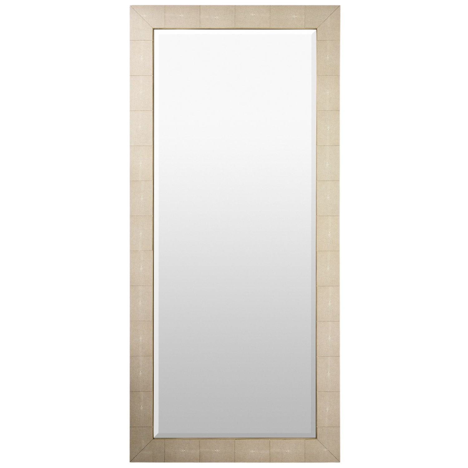 The Manta Mirror collection is exquisitely upholstered in natural-tone faux shagreen, with a clear mirror elegantly framed by a brushed brass-tone stainless steel fillet. The floor mirror is designed to lean effortlessly against a wall, it creates a sophisticated, freestanding statement in any interior. For added versatility, French cleats on the back allow it to be mounted vertically or horizontally. The Manta Mirror collection is available in two sizes, perfect for curated arrangements within your space.