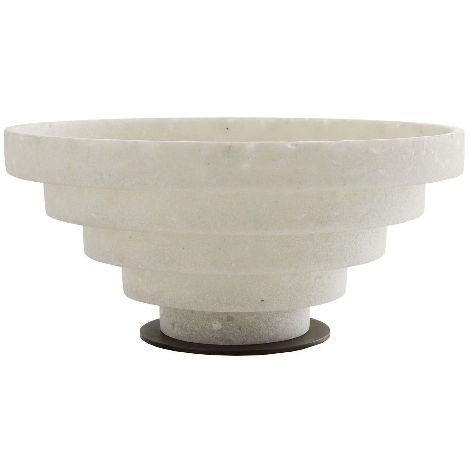 Stacked, concentric layers of ivory ricestone form this unique centerpiece, taking design cues f rom the Bauhaus movement. the base is a round plate of bronzed steel, providing a subtle support.