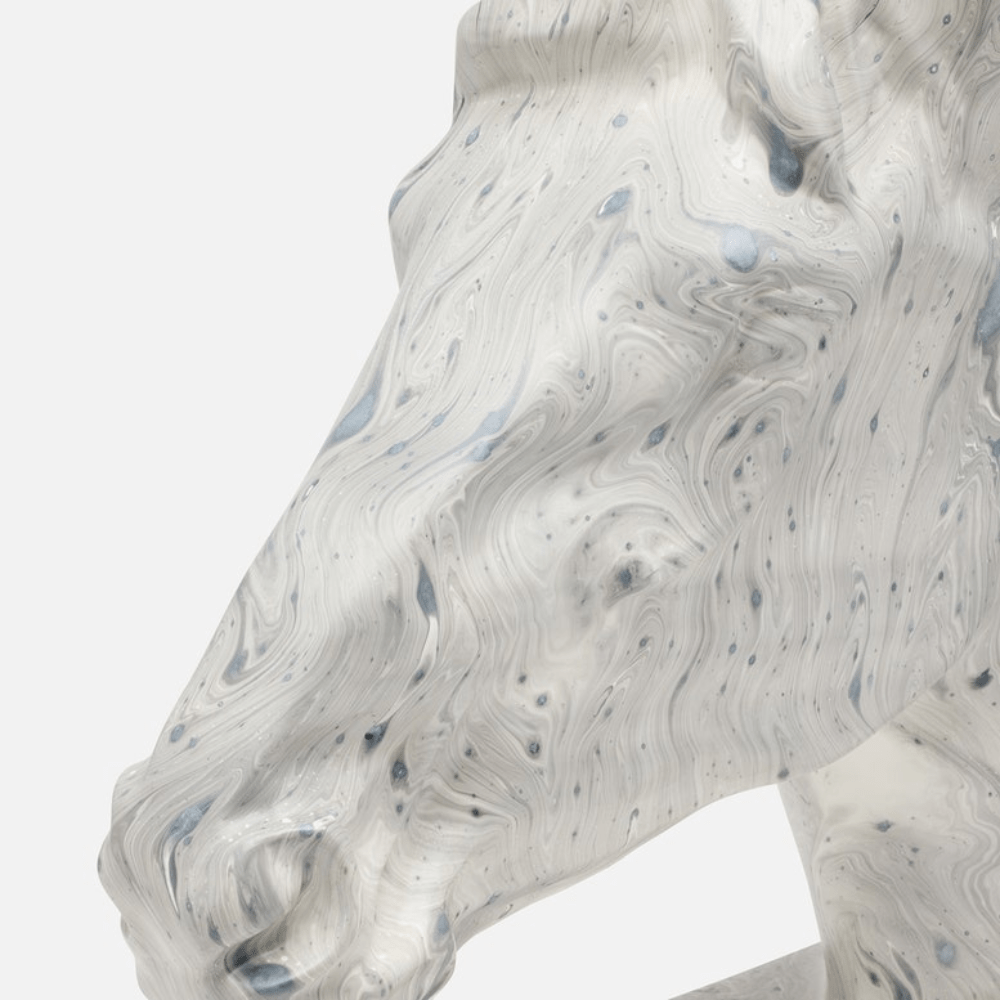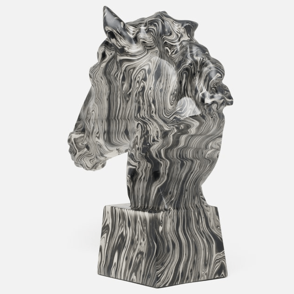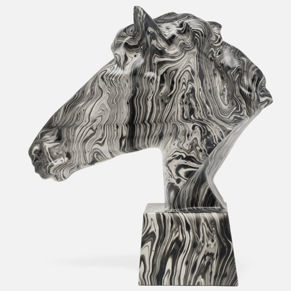 The spirited energy of a horse canters into the home. Lacquered resin is painted into stunning swirl patterns for a decadent look, no two is alike.