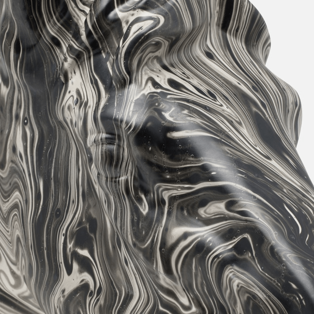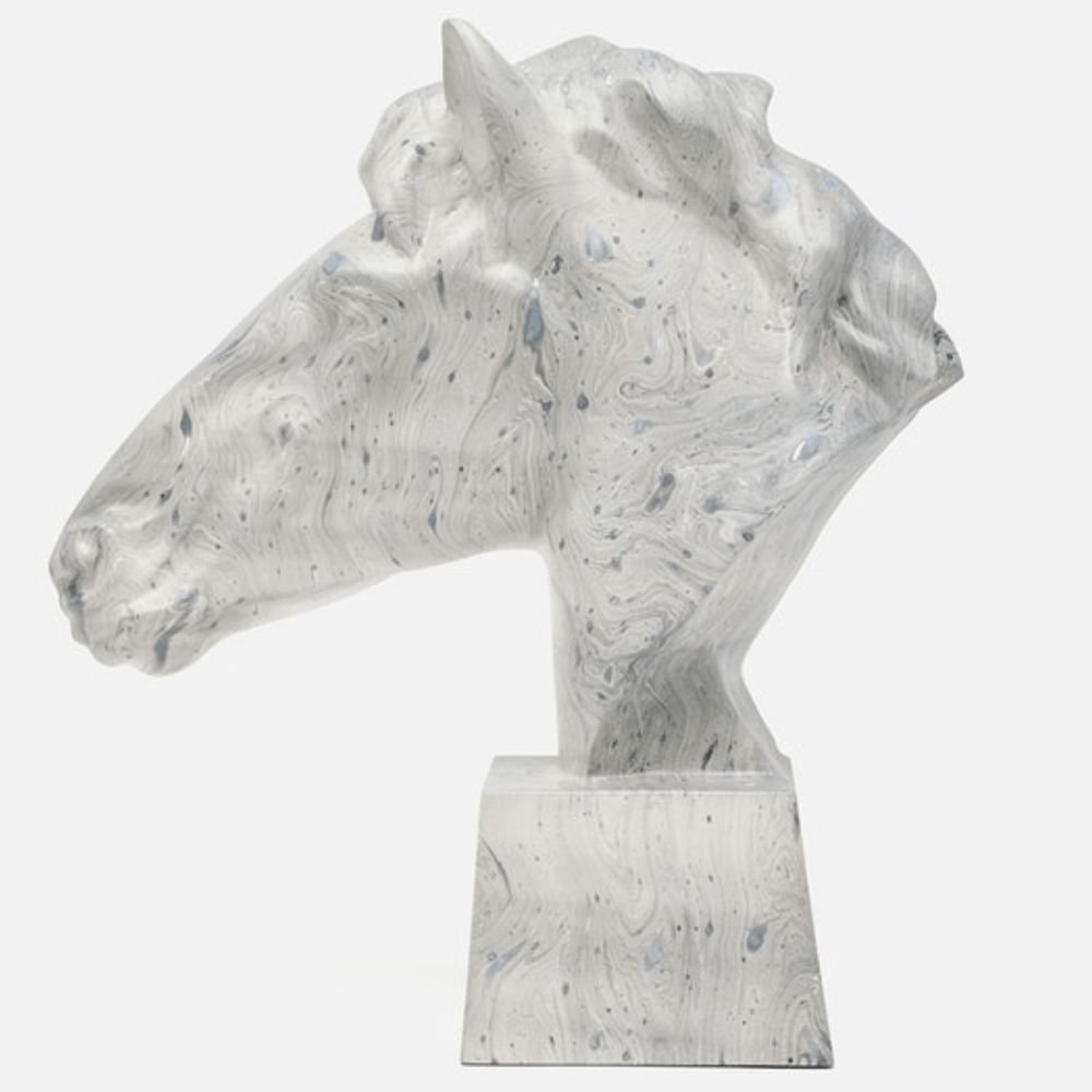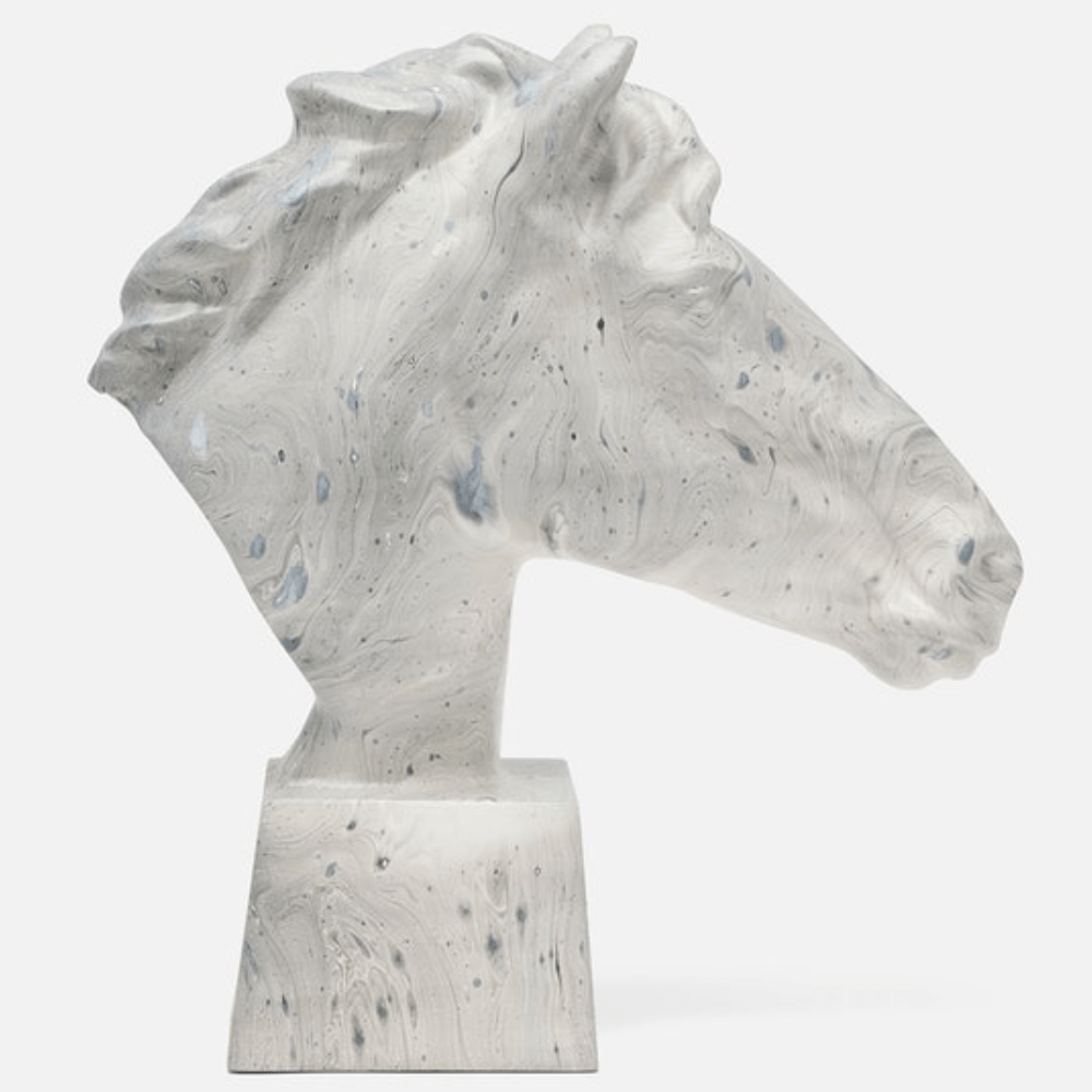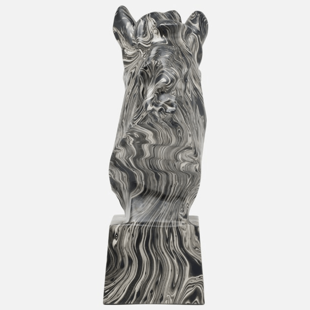 The spirited energy of a horse canters into the home. Lacquered resin is painted into stunning swirl patterns for a decadent look, no two is alike.