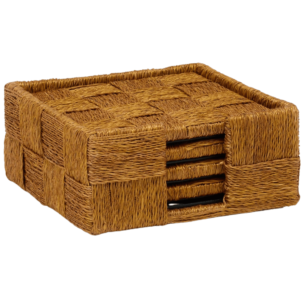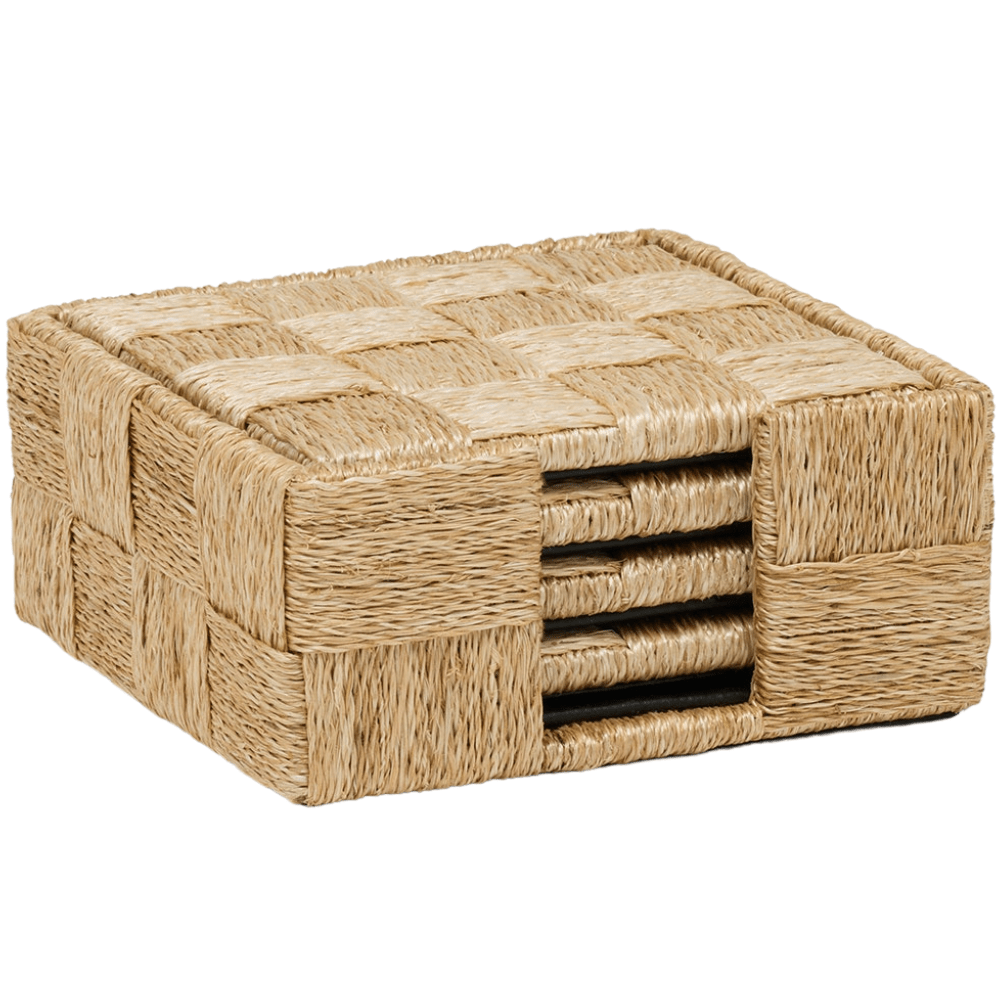 Set your drink on the Jasby coaster—handwoven with abaca in a checkered pattern for a sophisticated twist.