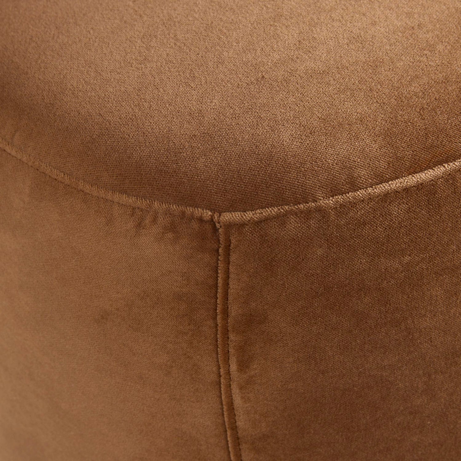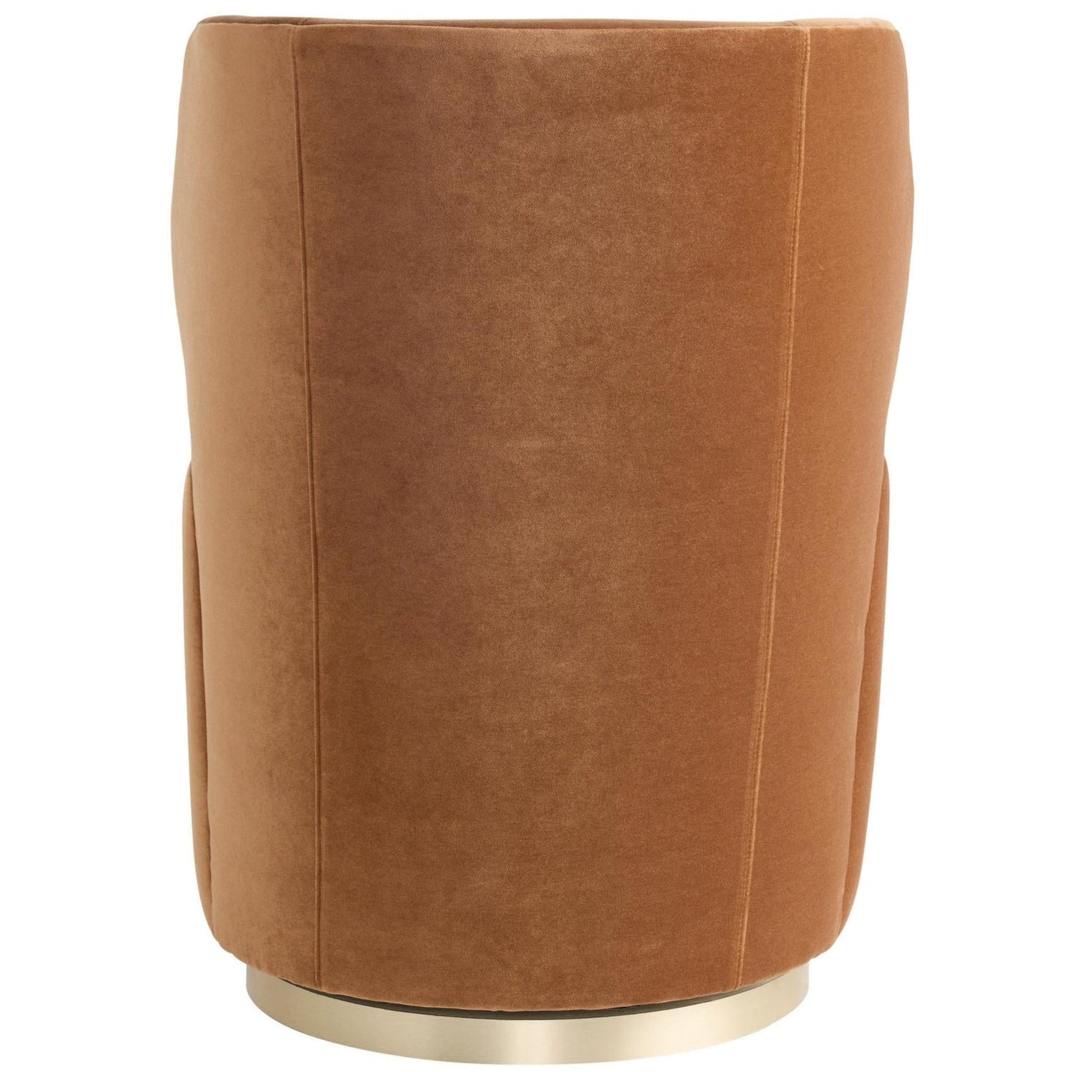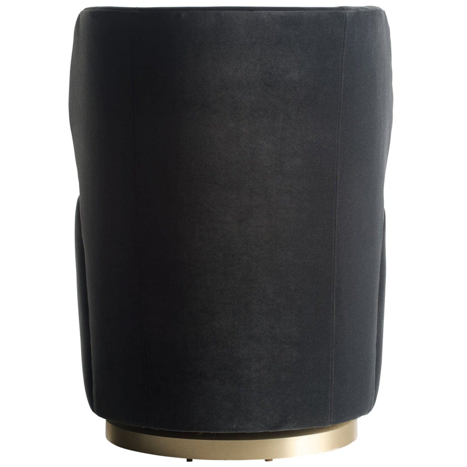 Beautiful from every angle, this wing-armed swivel is scaled for smaller spaces, which makes it both versatile and visually impactful. The low, angular Poppy chair is upholstered in sumptuous velvet and rests on a champagne iron plinth, creating a seat that’s as elegant as it is comfortable.