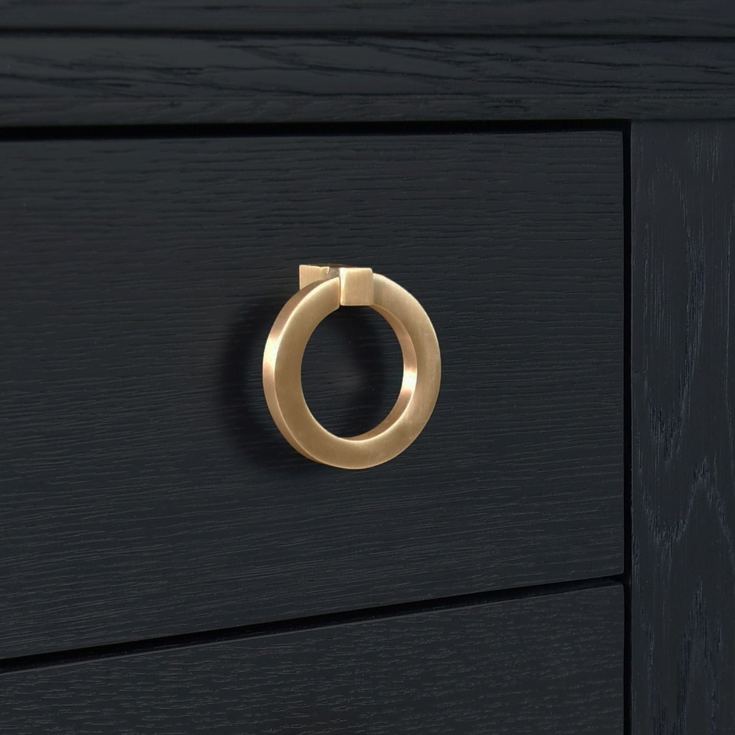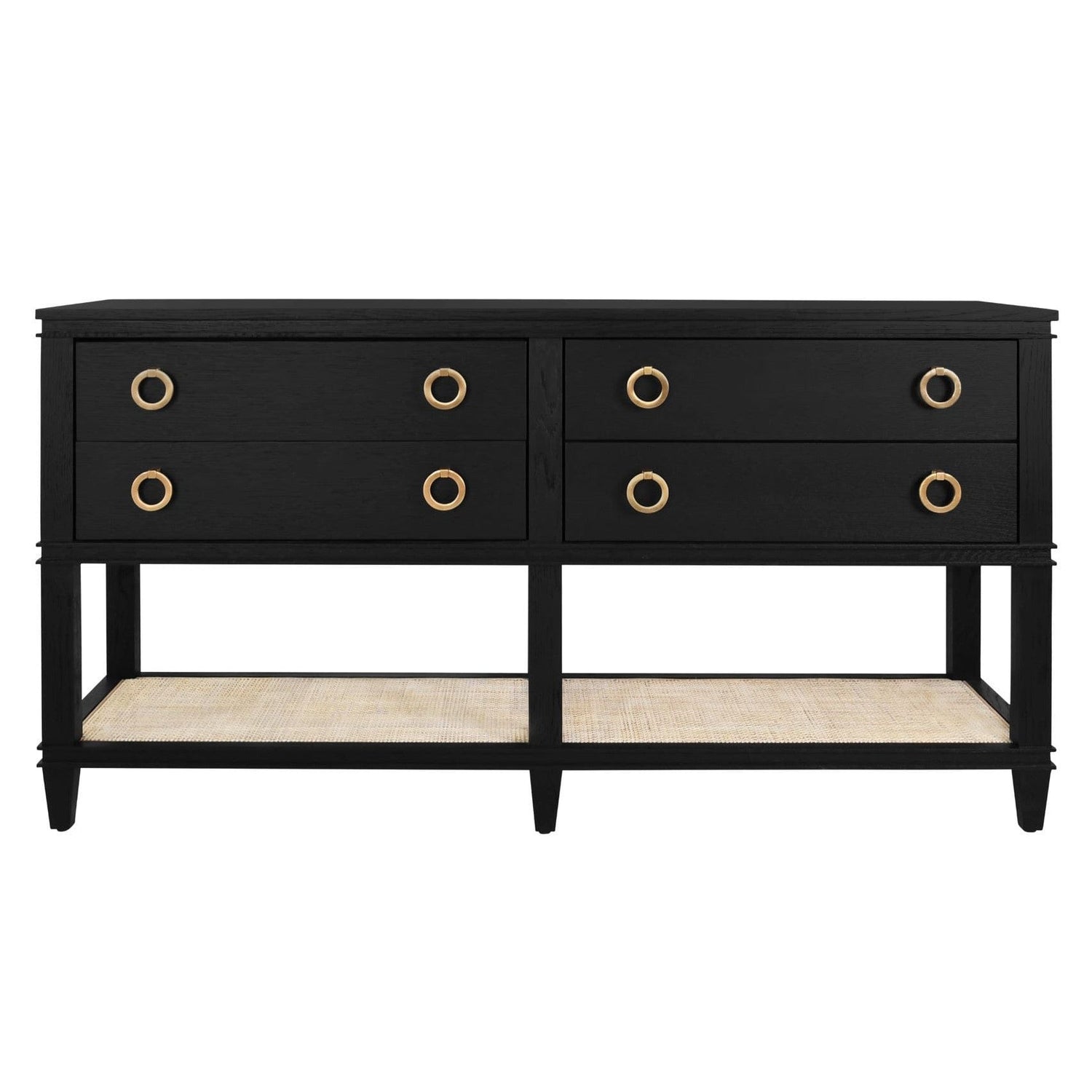 Four Drawer Console With Open Cane Shelf In Black or Cerused Oak