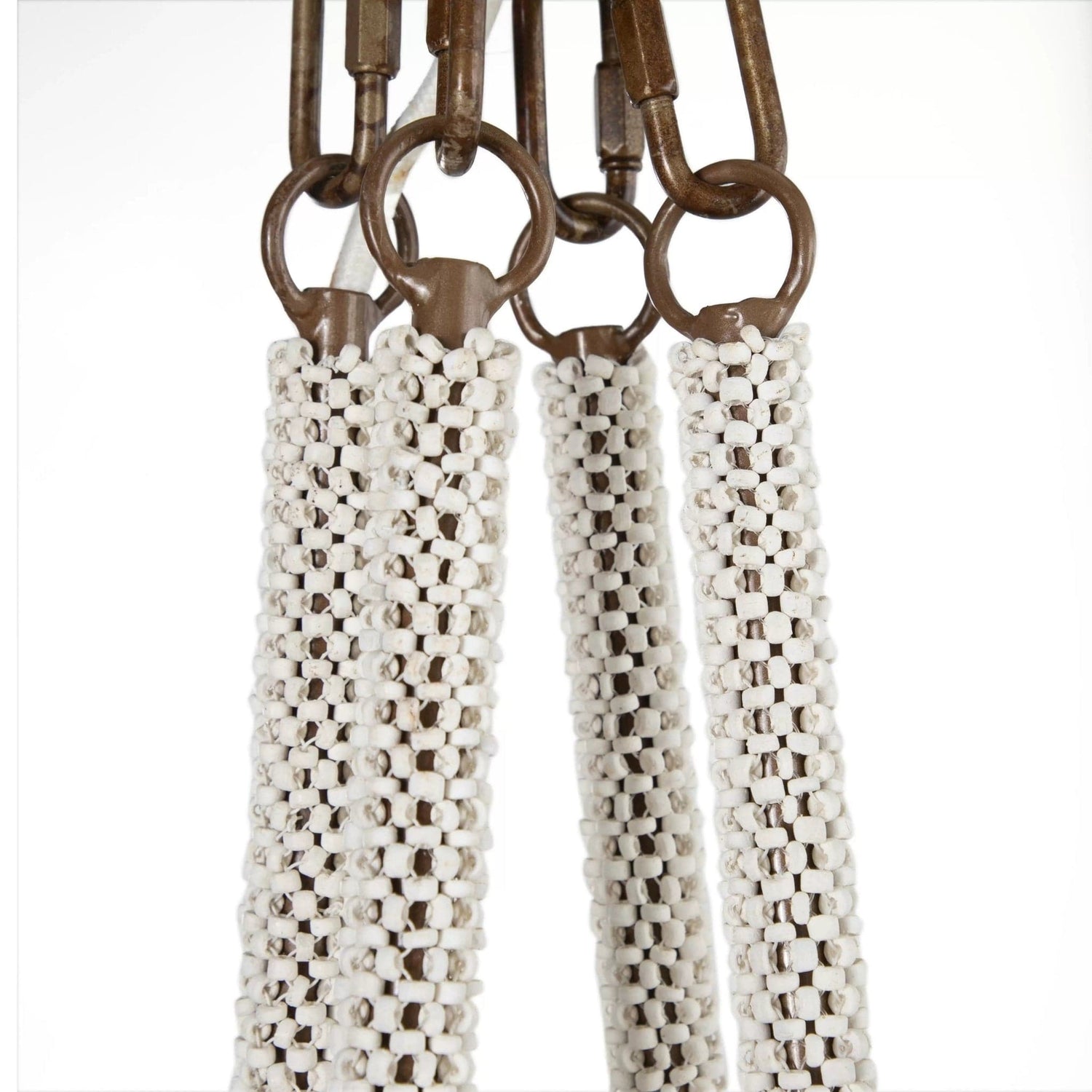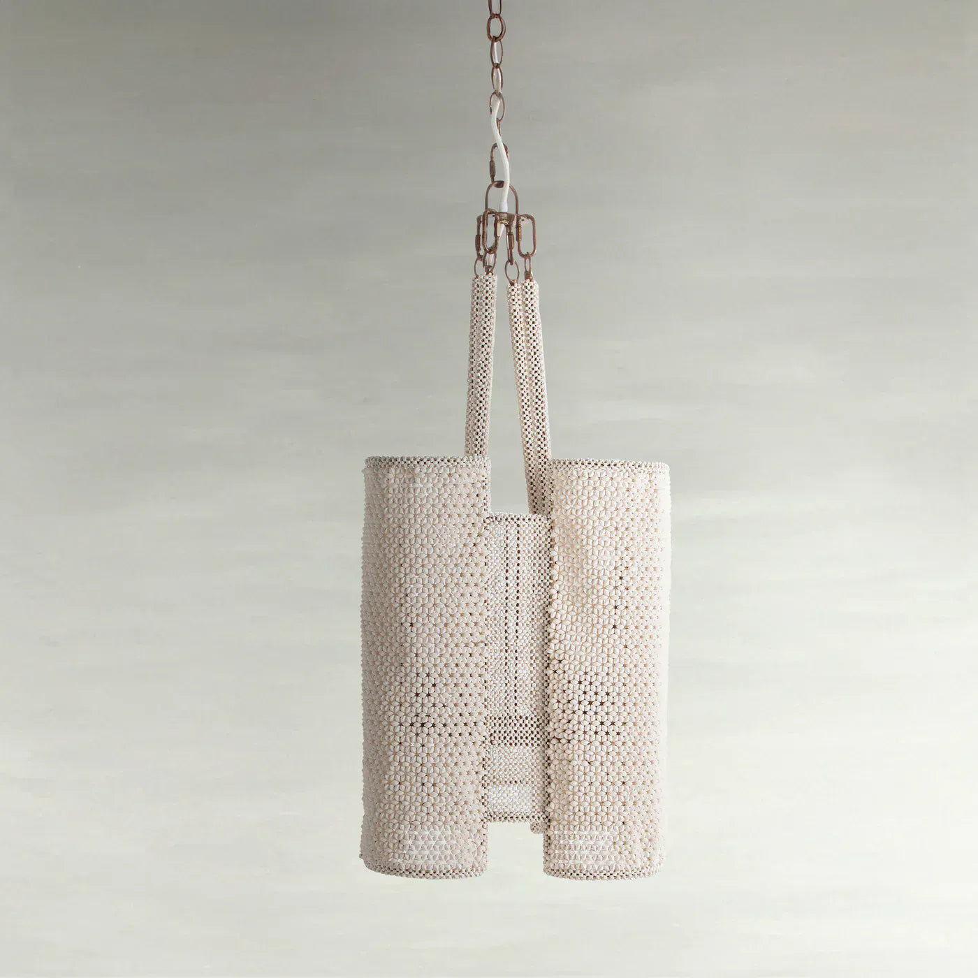 An extension of the beloved Teagan Chandelier the Teagan Pendant Light distills the same artistry and impact into a smaller more versatile form Handcrafted by skilled women artisans each pendant is made using sustainably sourced sun-dried coconut shells with every bead carefully shaped and strung to create a refined organic texture Featuring a single-cylinder silhouette this pendant brings a modern edge to traditional beaded lighting Its sculptural design adds depth and interest making it an ideal accent for kitchens powder rooms bedside lighting or in multiples over a dining table or island