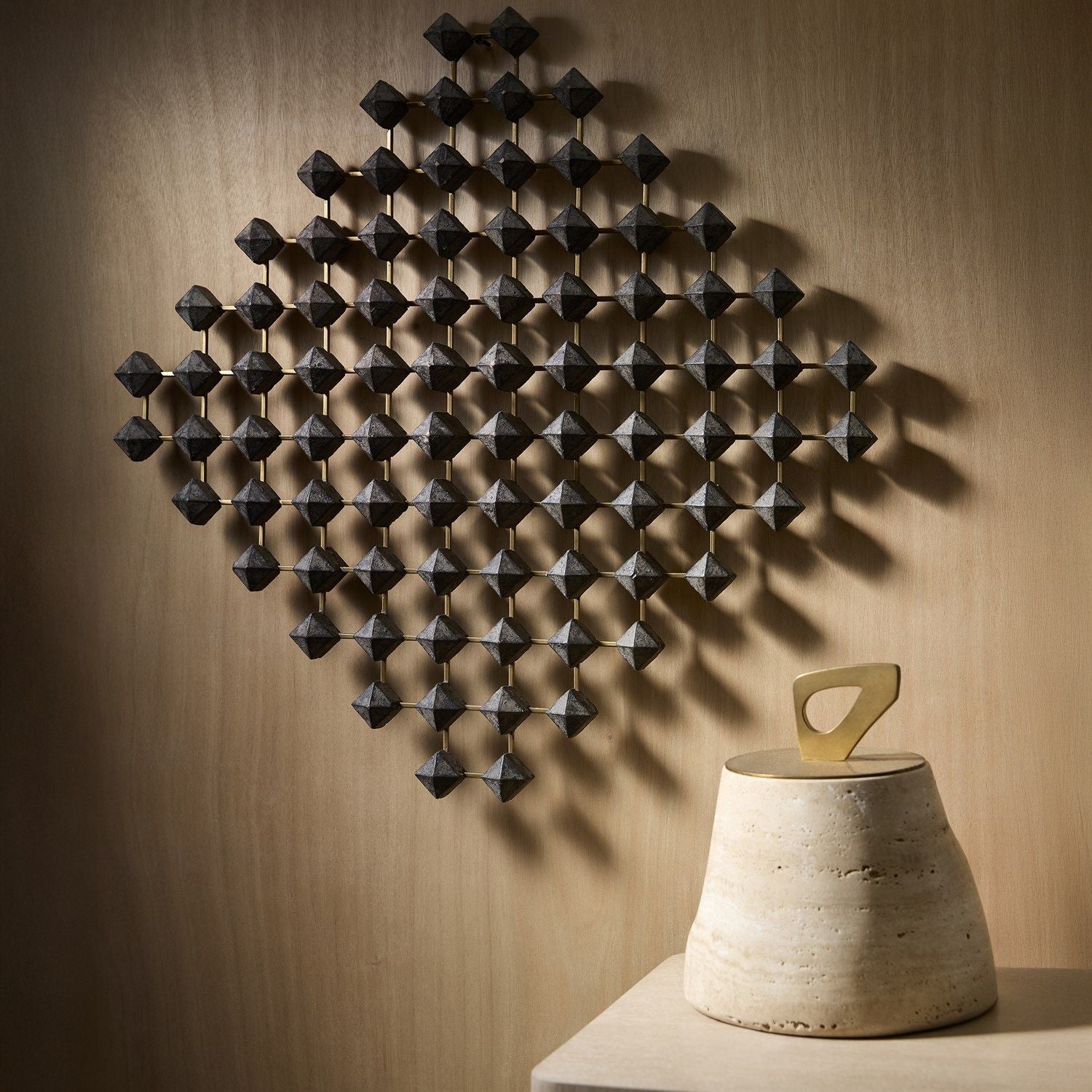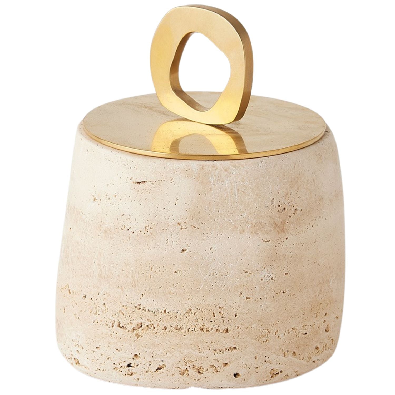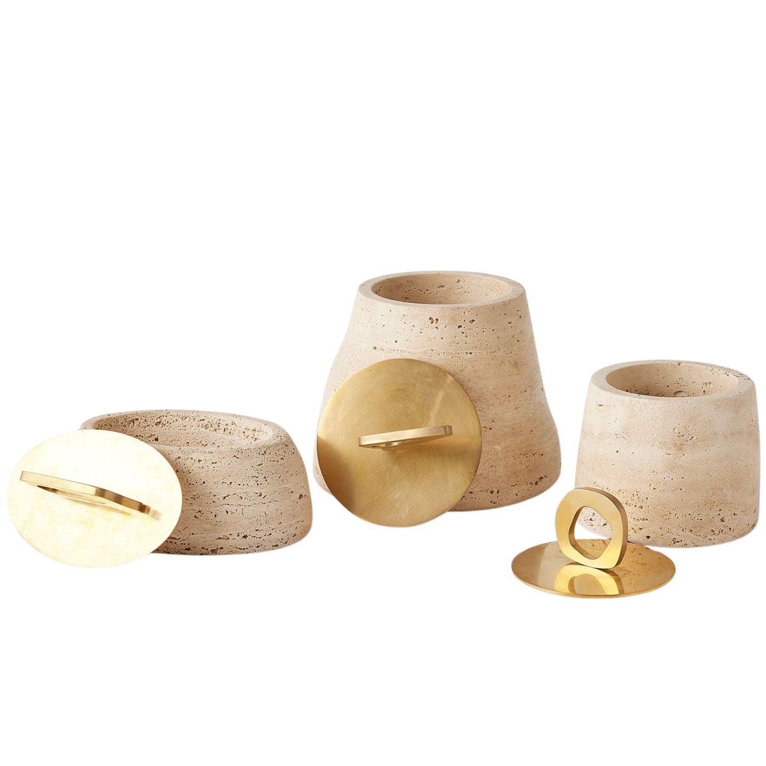 The Bocal Lidded Pot Collection by Lemieux et Cie merges natural Graffito marble stone with polished brass, creating sculptural storage with a jewelry-like touch. Abstract geometric handles add a modern edge, making these functional accents both artful and refined.