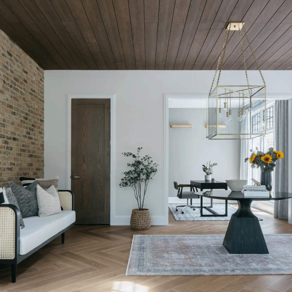 A large cube frame is suspended from four intricately-detailed chains giving Catskill an air of sophistication. The lamps come down from the top as opposed to up from the bottom adding to the distinctive style while providing gorgeous downlight.