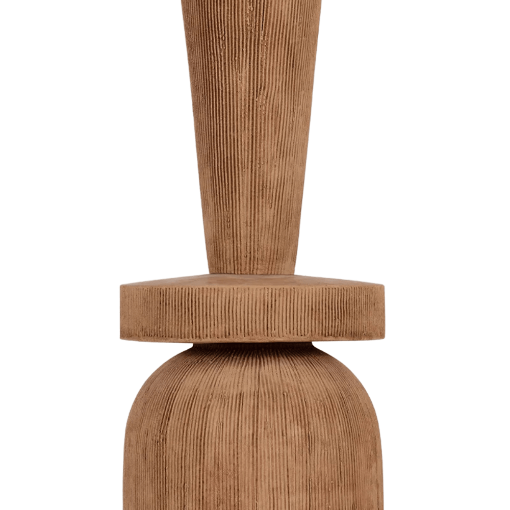 The statuesque Kinloch floor lamp is all about distinctive shapes and textures. While it mimics the appearance of wood, the stacked geometric base is a tactile Ash Brown ceramic. A sleek metal stem finished in Bronze Leaf connects the base to a raffia fabric drum shade, resulting in a mixed-material blend of warm neutrals. Add this bold lamp to an earthy, modern interior. *Due to the one-of-a-kind nature of the medium, exact colors and patterns may vary slightly from the image shown.
