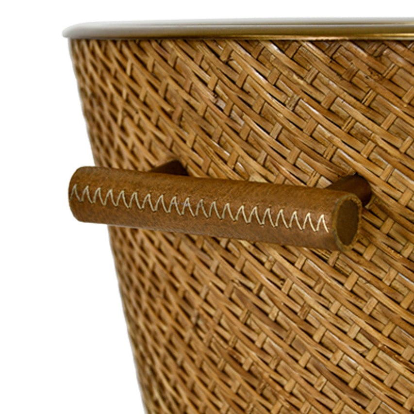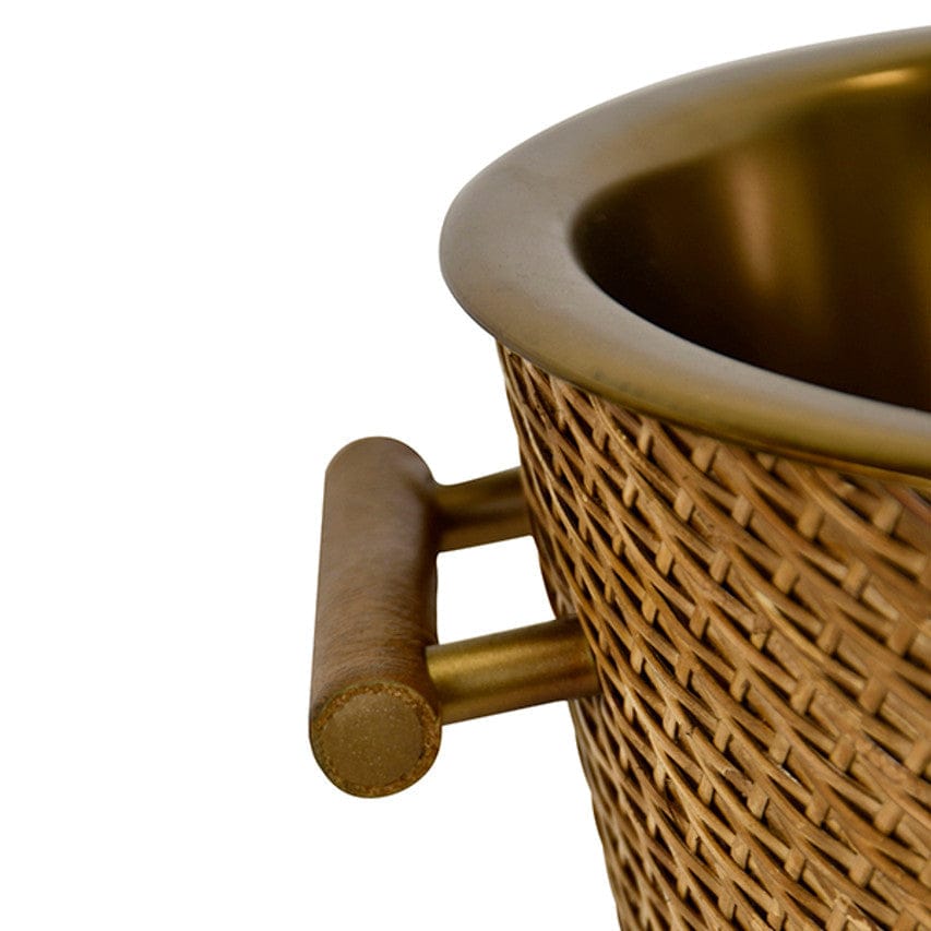 Small woven rattan wine cooler in burnished brass.